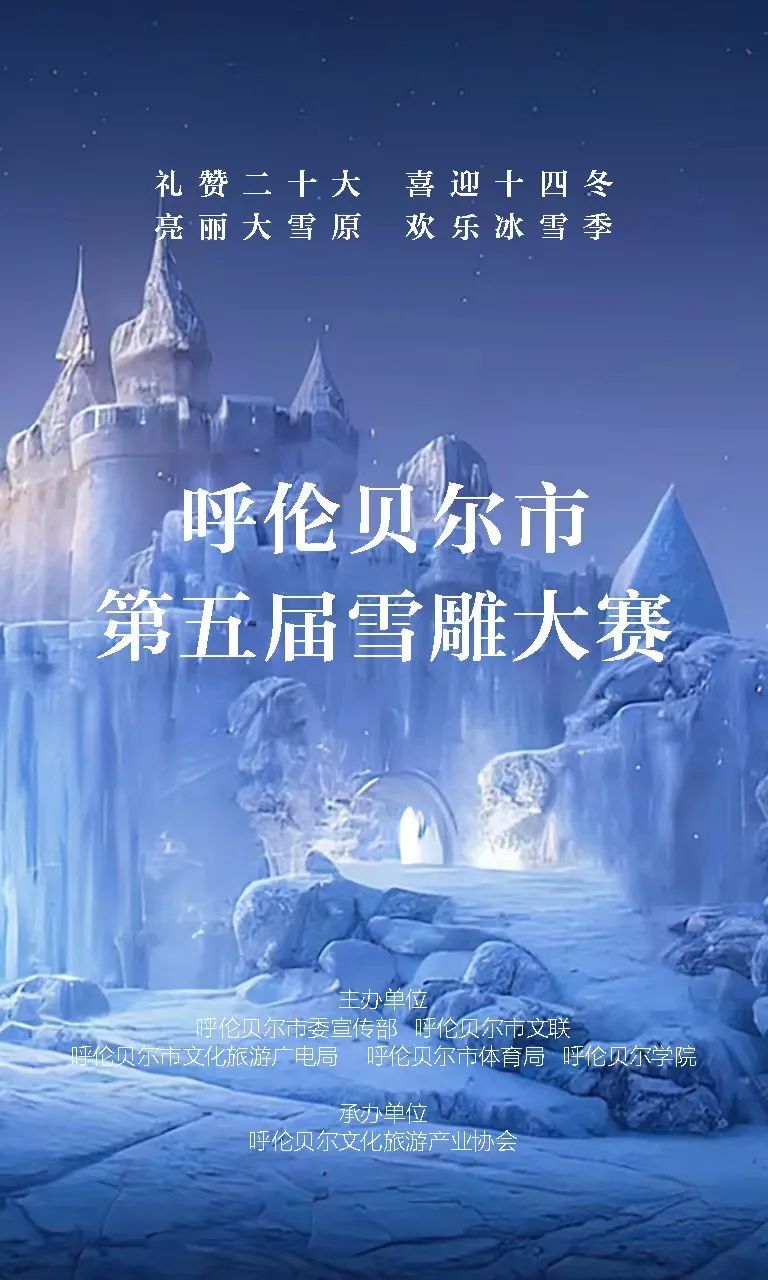 为庆祝党的二十大胜利召开,展示新成就、喜迎十四冬,深入落实文旅产业提标提效发展行动计划,高水平举办呼伦贝尔市首届冰雪文化运动旅游季活动,着力打造呼伦贝尔冰雪旅游品牌,实现冰雪文旅产业高质量发展,特举办以“礼赞二十大、喜迎十四冬、亮丽大雪原、欢乐冰雪季”为主题的呼伦贝尔市第五届雪雕大赛。此次雪雕大赛在呼伦贝尔历史博物馆门前广场举行,大赛中参赛者们精雕细琢,一个个雪雕栩栩如生,精美无比,欢迎大家来呼伦贝尔历史博物馆参观展览的同时来欣赏可爱的雪雕们。