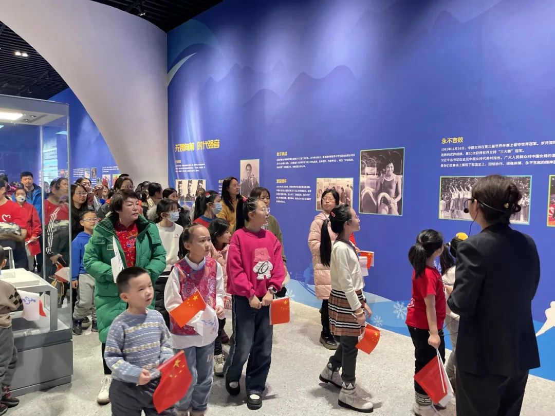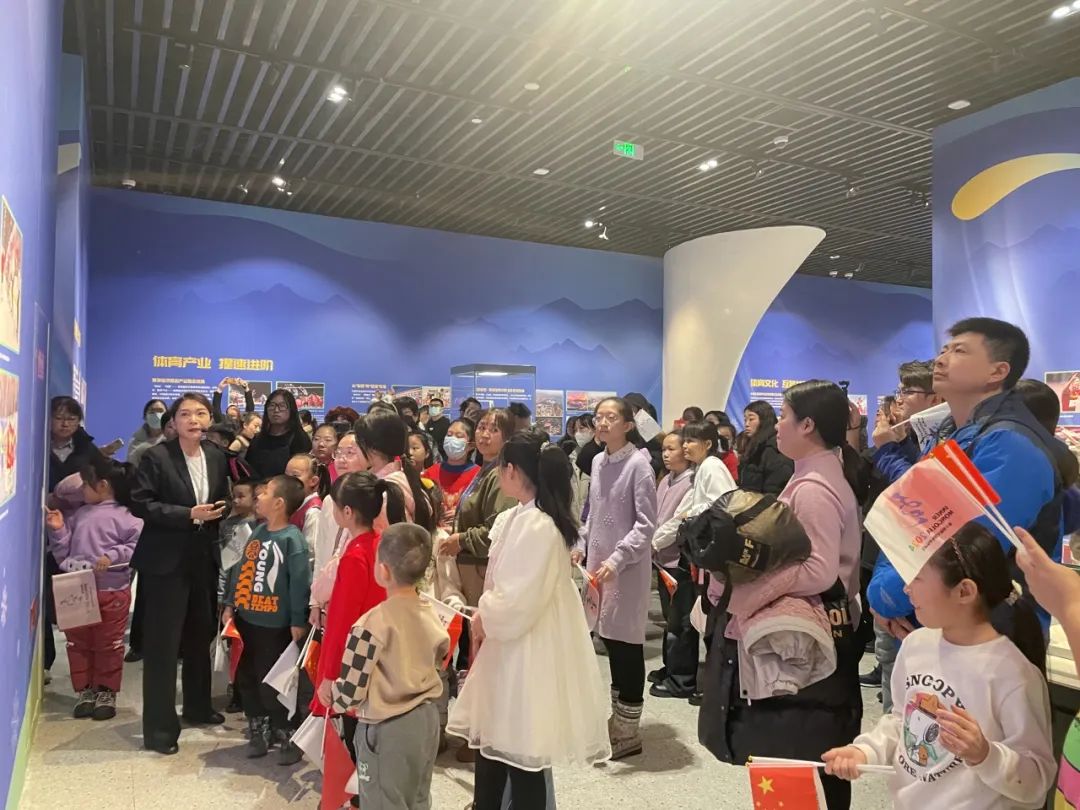 活动第一场,一百四十余名大小朋友集结在历史博物馆大厅,由历史博物馆社教老师带领大家参观《体育力量 中国精神——中国体育文化展》和《内蒙古体育事业成就展》两个极具体育魅力的文化大展,通过展览让孩子们进一步了解运动健儿们用拼搏与汗水书写的追梦故事。