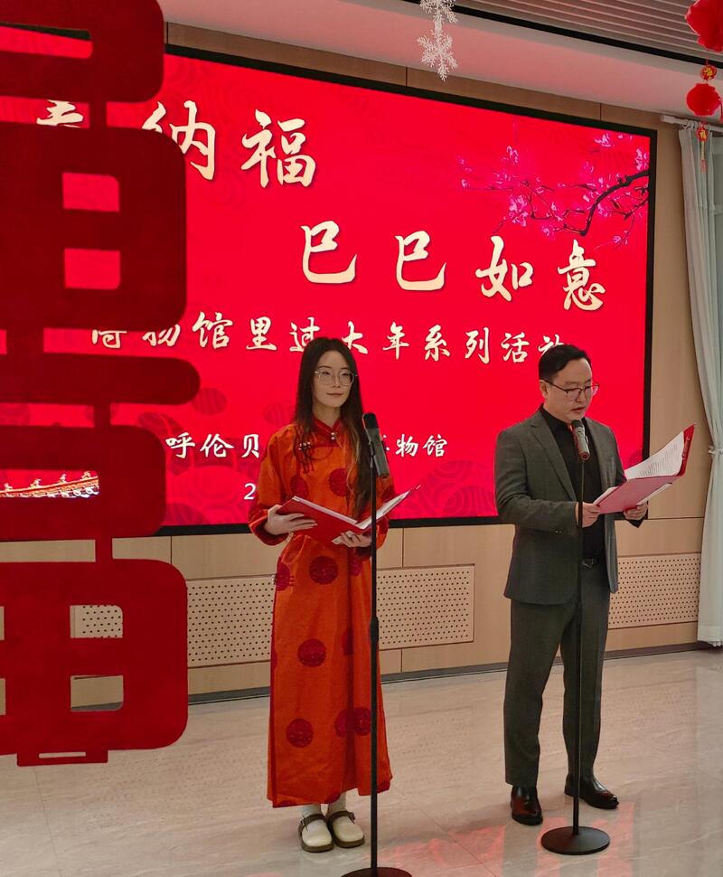 FM104.6呼伦贝尔交通文艺广播《耳边好风景》节目的记者来到了活动现场进行了采访,在现场我们采访到了呼伦贝尔民族博物馆副馆长崔爽,为我们详细介绍了活动的内容和群众的参与情况,也为广大市民朋友们送上了新春的祝福。