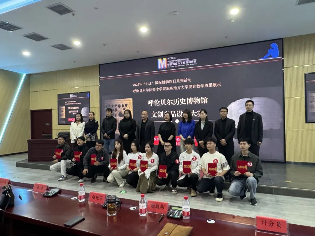 由馆方和校方共同组成的5名评委,认真地聆听了同学们的设计方案和理念,充分感受到他们对呼伦贝尔厚重历史文化的深刻理解和对文创设计工作的浓厚热情。经过激烈的评选,最终评出一等奖1名、二等奖2名、三等奖3名及优秀奖若干名。呼伦贝尔博物院还向呼伦贝尔美术学院颁发本次比赛优秀组织奖及3名优秀指导老师荣誉称号。大赛最后呼伦贝尔学院美术学院何锡彭院长对本次大赛给予了高度的评价和肯定并对参赛的同学们给予了热情的鼓励。