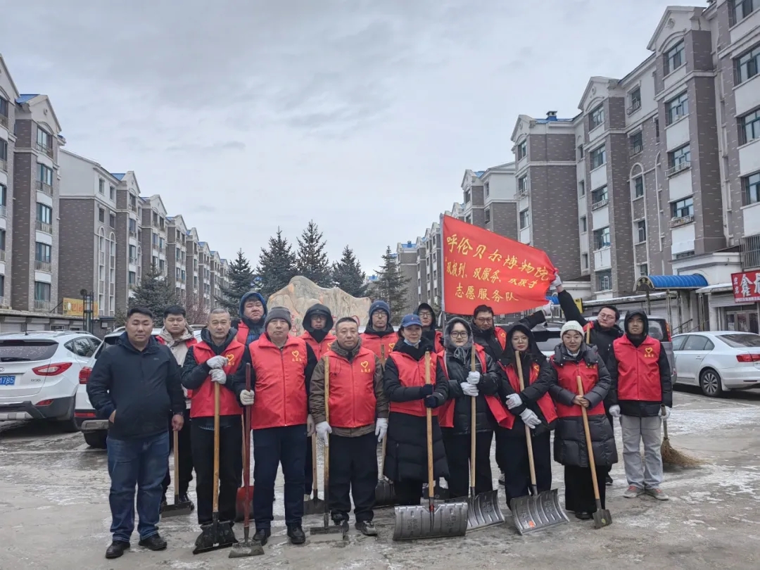 自11月1日以来,呼伦贝尔市频繁出现极端温差天气,导致降雪过后路面积雪融化结冰现象严重,给市民出行带来极大不便。为切实保障居民出行,消除安全隐患,确保道路畅通,呼伦贝尔博物院职工联合共建单位农垦社区工作人员一起,前往龙辰家园小区开展清雪铲冰志愿服务活动。此次活动呼伦贝尔博物院共有16名同志参加,主要对小区内主干道进行了清雪铲冰作业。