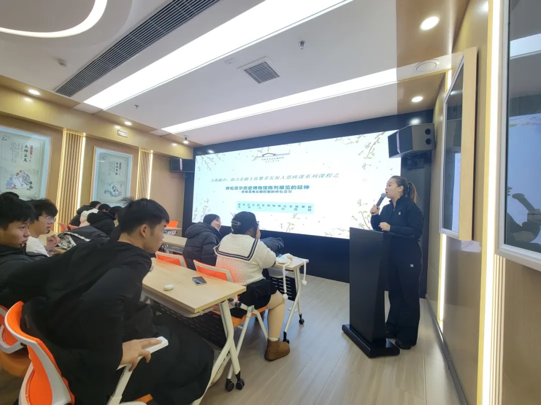 呼伦贝尔历史博物馆以铸牢中华民族共同体意识为主线,在馆校合作双方共建框架下,依托博物馆丰富的馆藏与文物资源,11月--12月,策划开展了“文旅融合,助力北疆文化繁荣发展大思政课系列课程之呼伦贝尔历史博物馆陈列展览的延申”走进呼伦贝尔职业技术学院社科普及授课活动15场,来自不同专业、不同年级的1200多名呼职学生参加了此次系列活动。活动结合馆校联动实际工作,讲述了北疆文化的历史和现代价值。课堂讲解将呼伦贝尔历史博物馆的展陈内容、历史文化及文物故事带进校园,深入浅出地分析了北疆文化的深厚底蕴,增强了学生们对北疆文化的认同感。