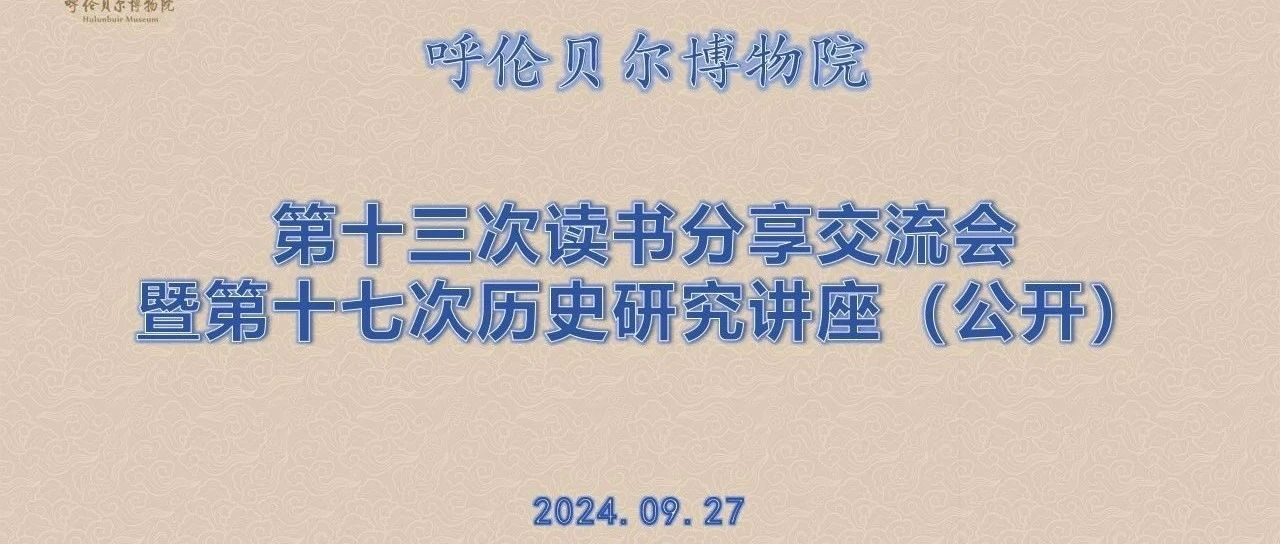 2024年9月27日下午,呼伦贝尔博物院举办第十三次读书分享交流会暨第十七次历史研究讲座(公开)。