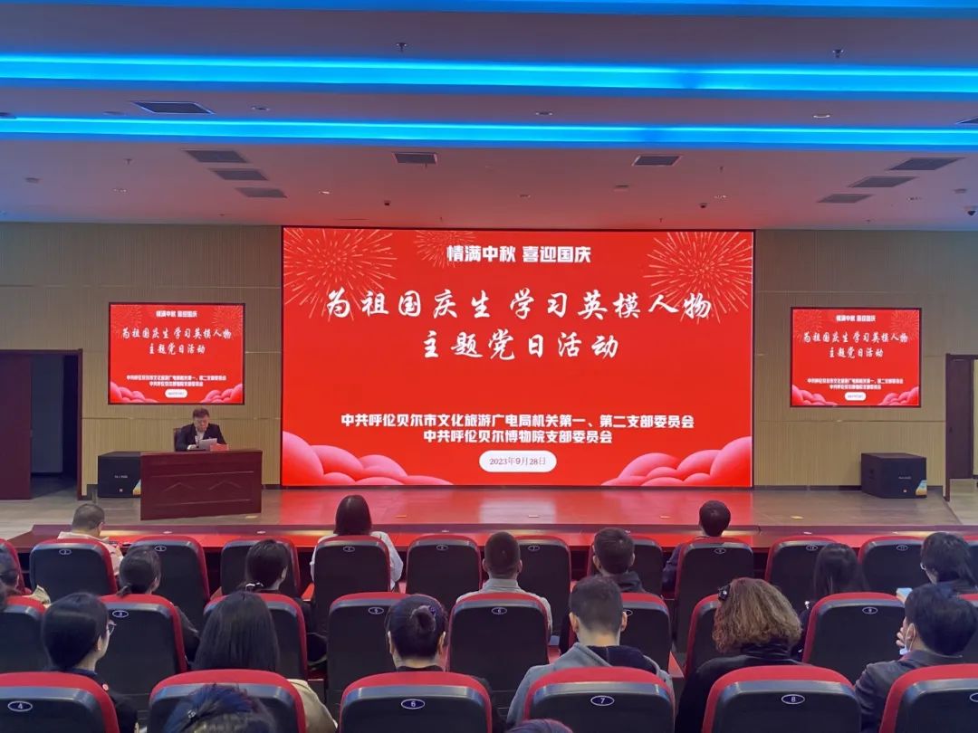 为热烈庆祝中华人民共和国成立74周年,进一步增强基层党组织的凝聚力和向心力,不断提升全体党员的政治素养和党性修养,中共呼伦贝尔博物院支部委员会联合中共呼伦贝尔市文化旅游广电局机关第一、第二支部委员会于9月28日开展了“为祖国庆生 学习英模人...