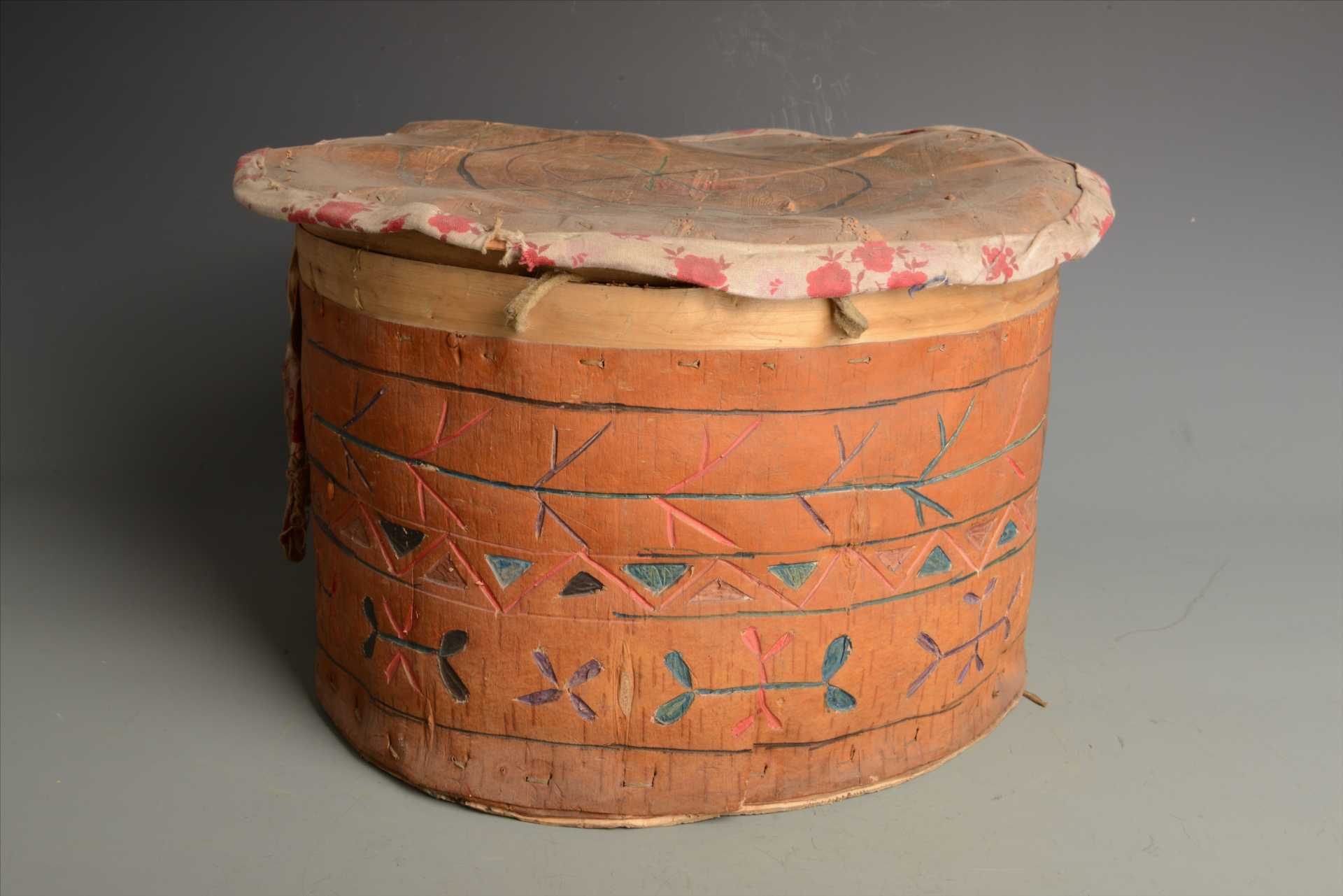 现代鄂温克族彩绘植物纹桦皮盒