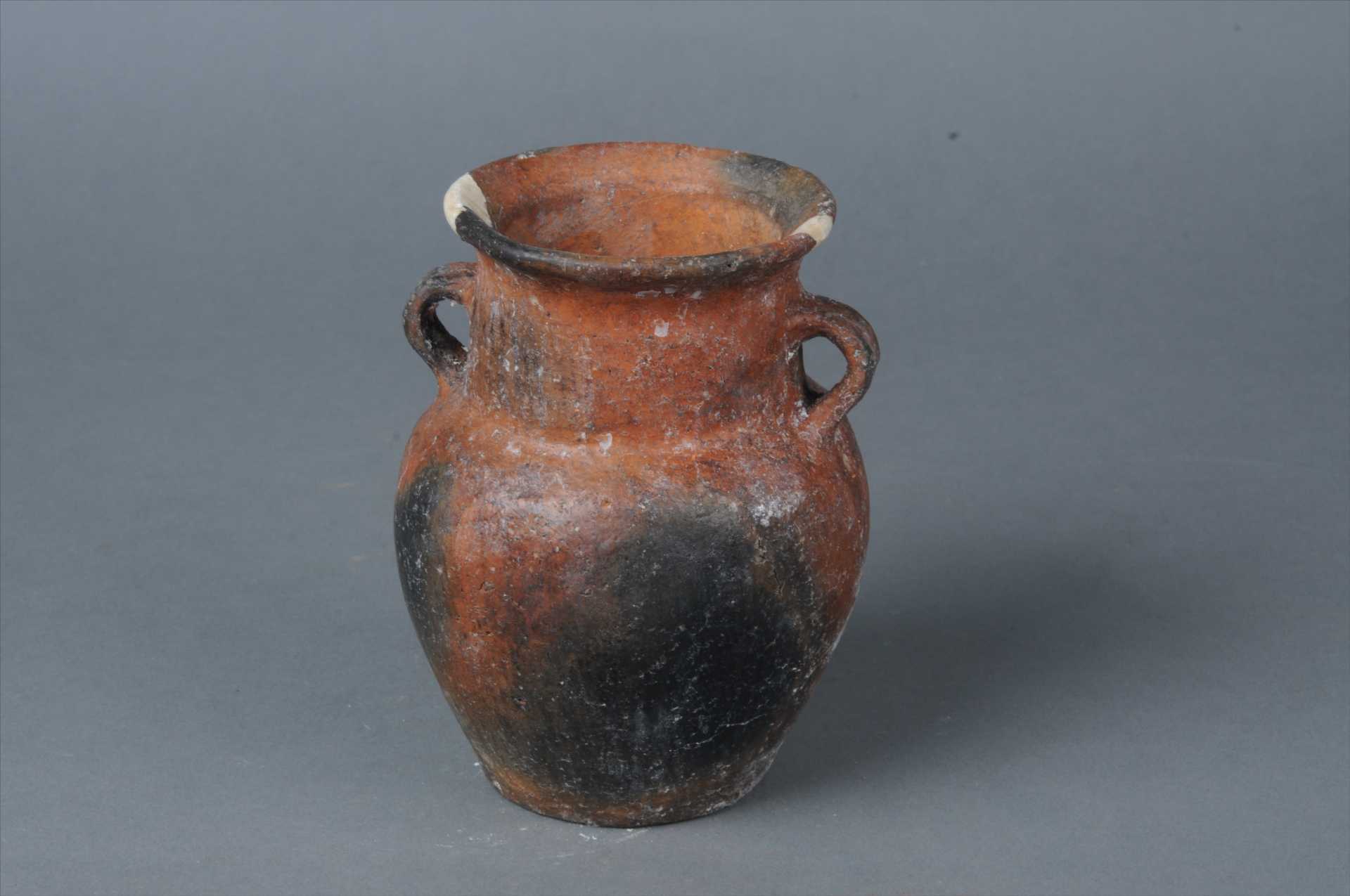 汉双耳红褐陶罐