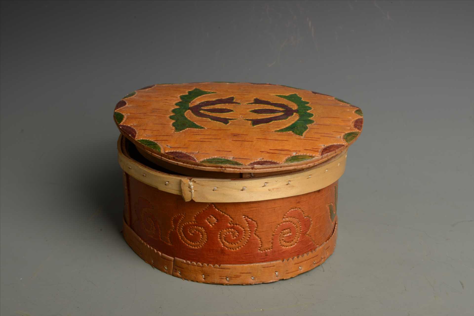 现代鄂温克族彩绘桦皮盒