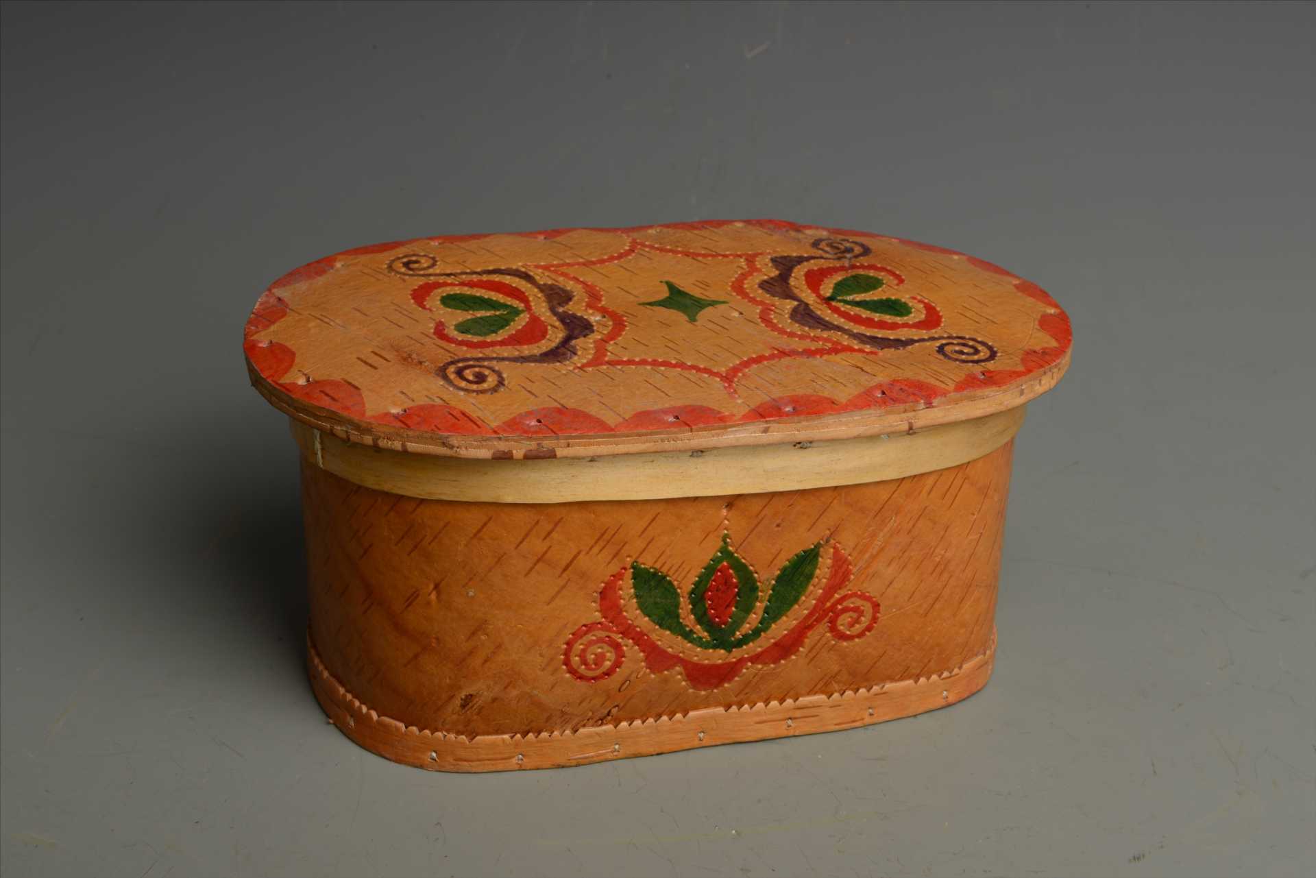 现代鄂温克族彩绘桦皮盒