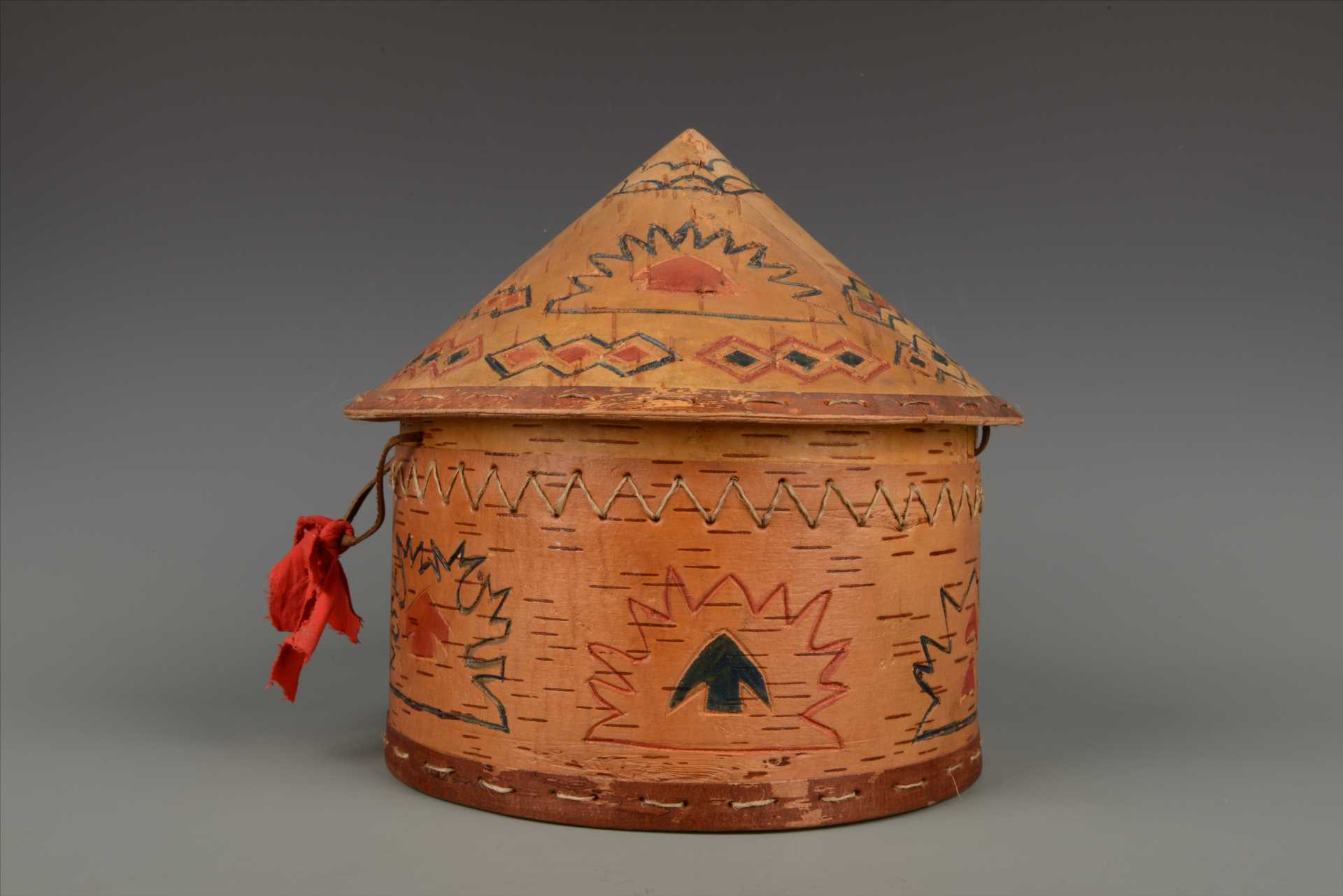 现代鄂温克族彩绘桦皮帽盒