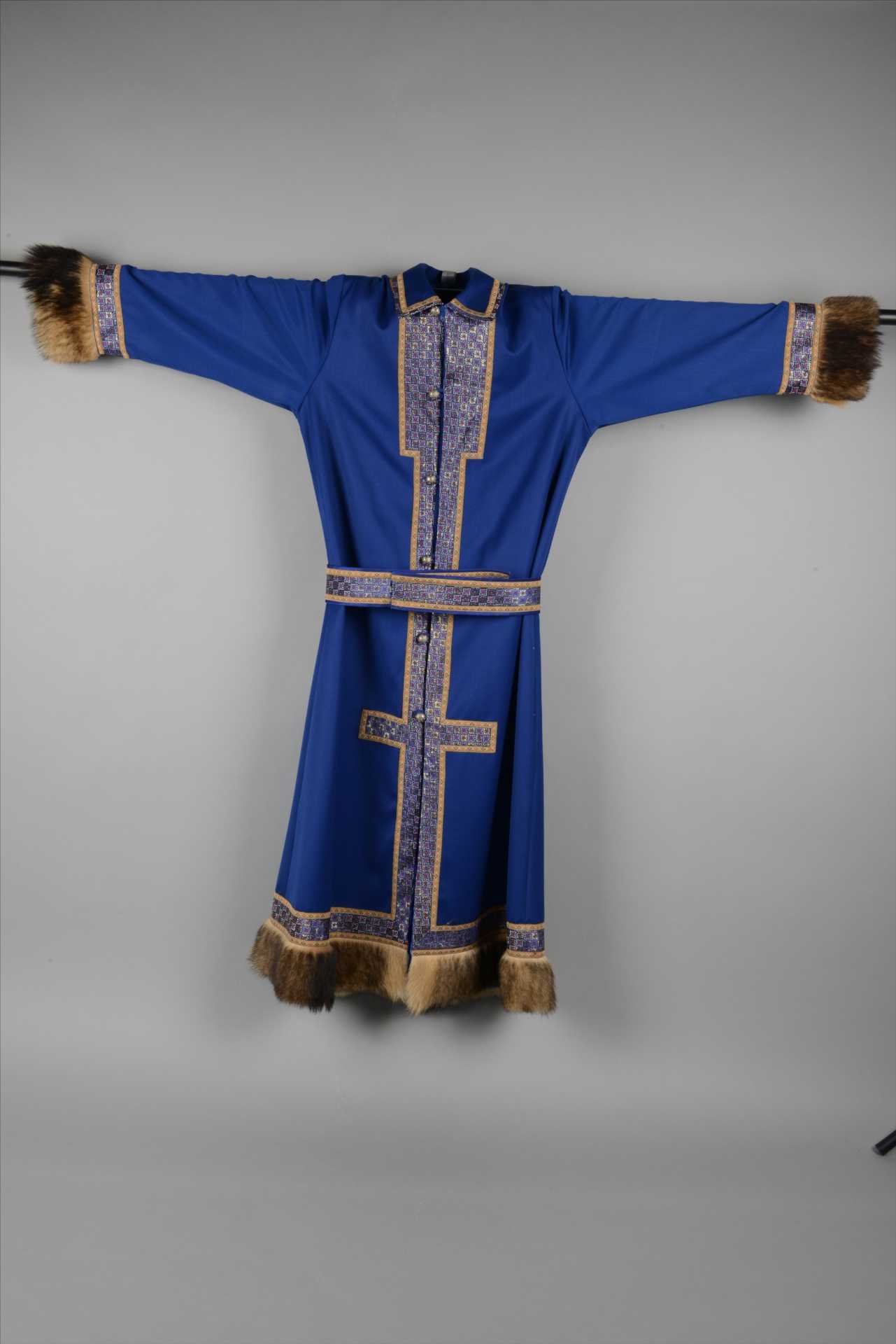 现代鄂温克族方领束腰长袍
