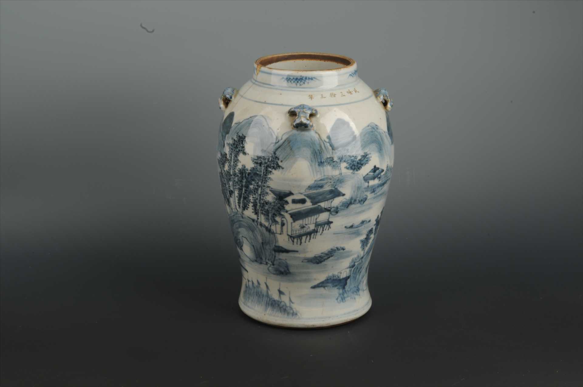 民国青花渔樵耕读纹四系罐