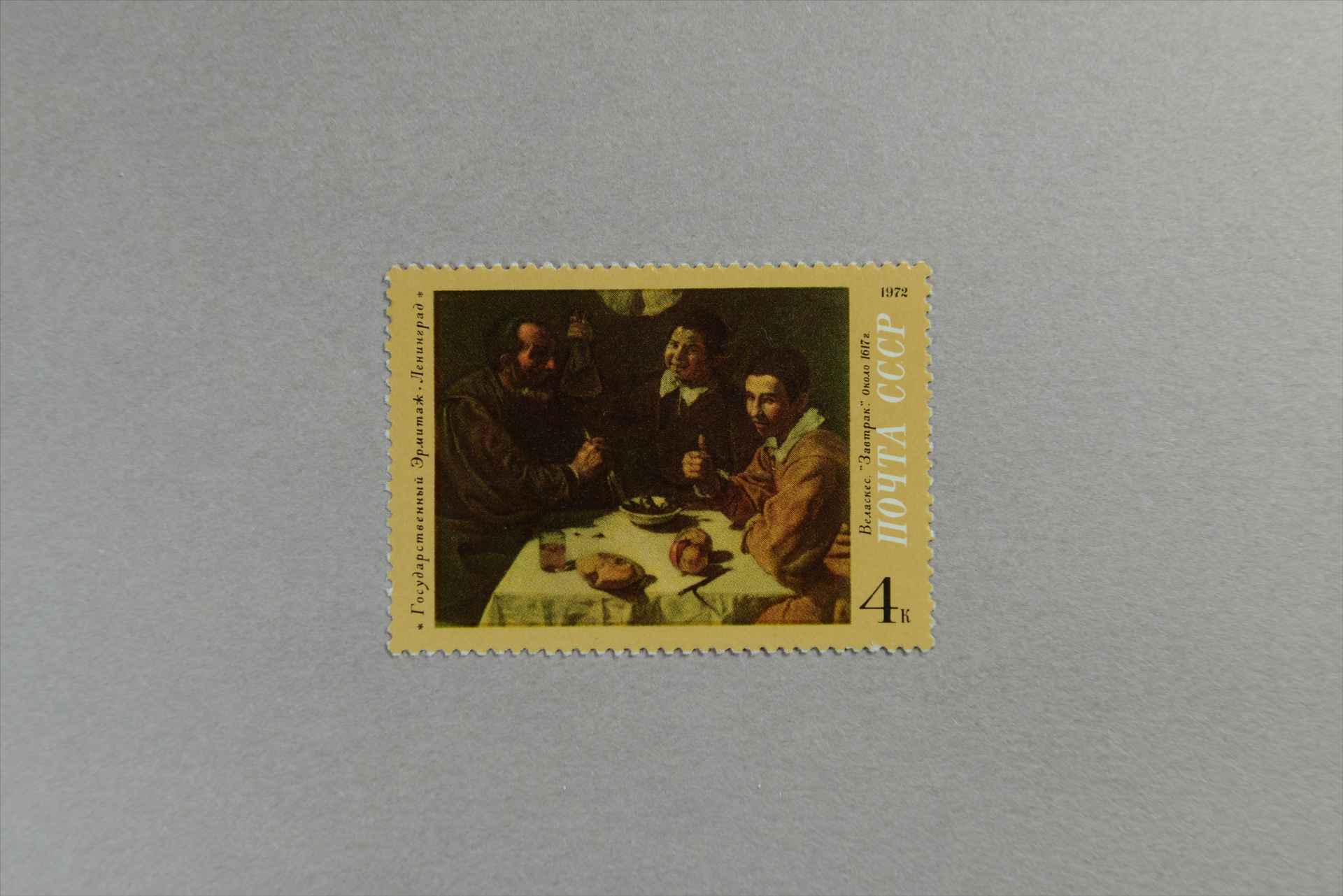 前苏联博物馆收藏的外国名画维拉斯凯斯的《早餐》邮票
