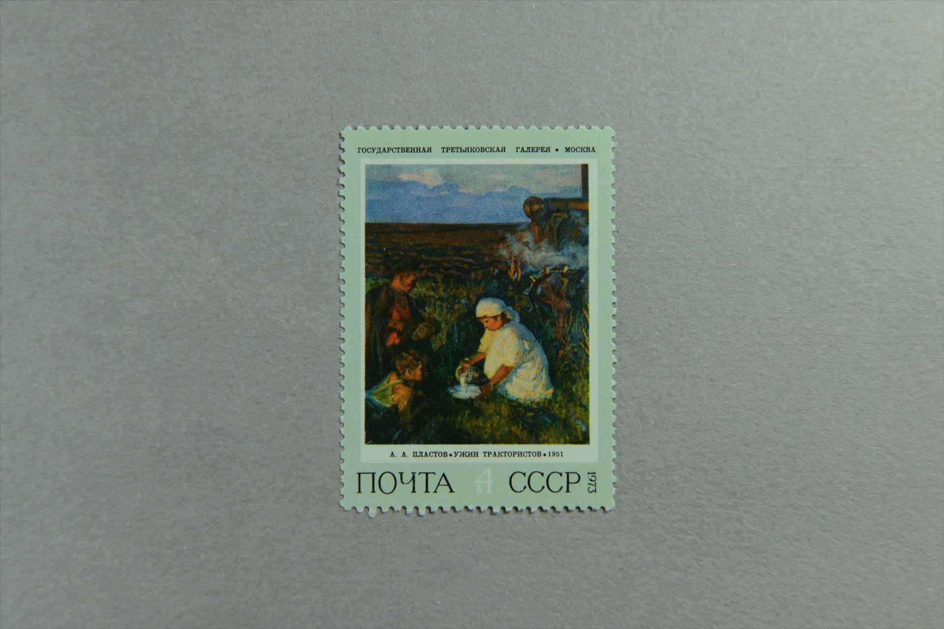 前苏联写生画《拖拉机手的晚餐》阿·普拉斯托夫绘邮票