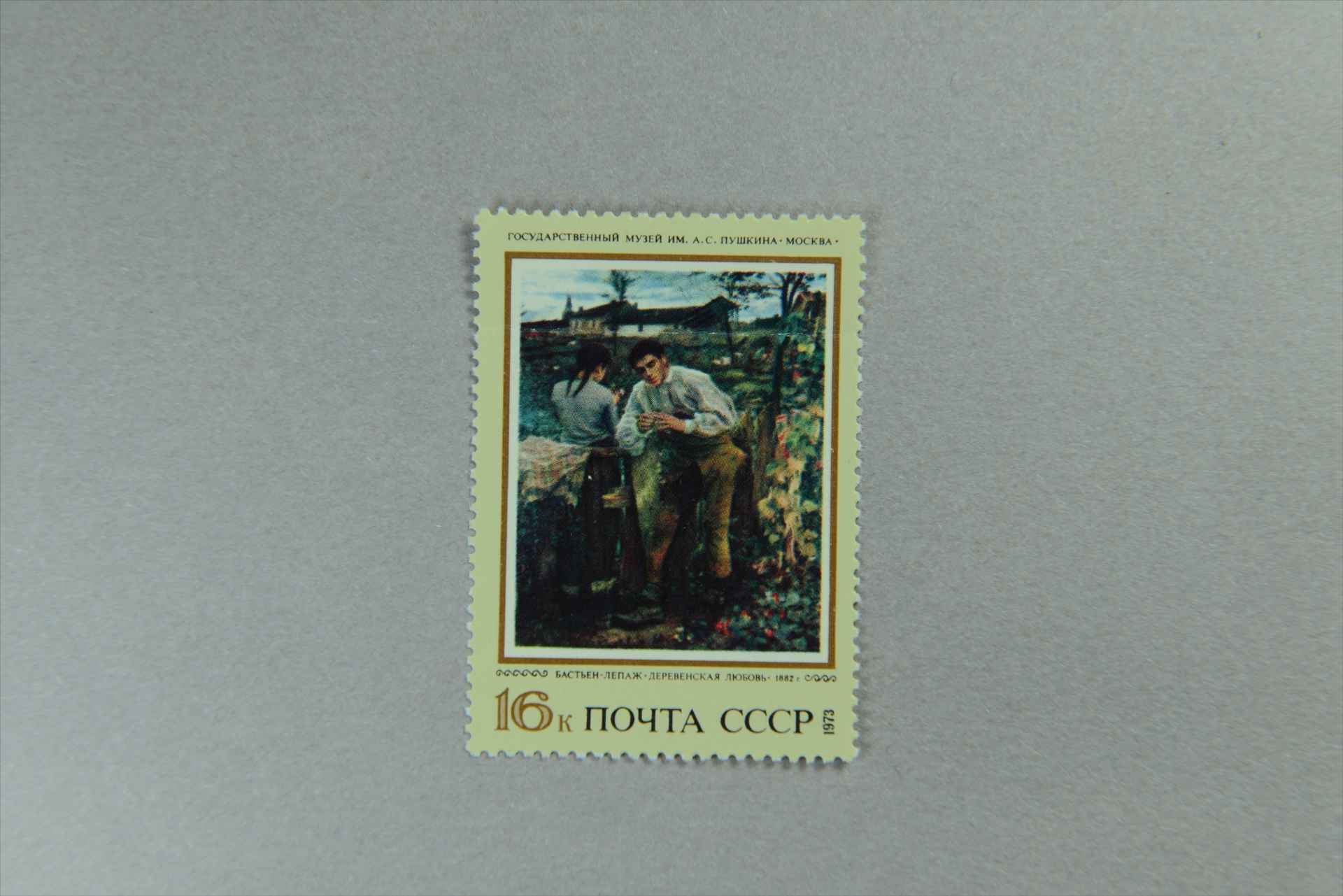 前苏联博物馆的外国名画《乡村的爱情》1882年儒尔·巴斯蒂安-勒帕日绘邮票