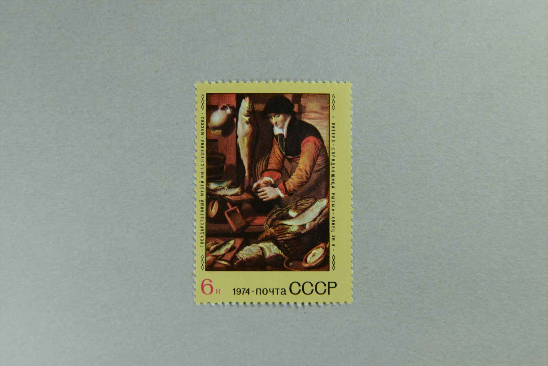前苏联博物馆的外国写生画比埃特斯《卖鱼女》邮票
