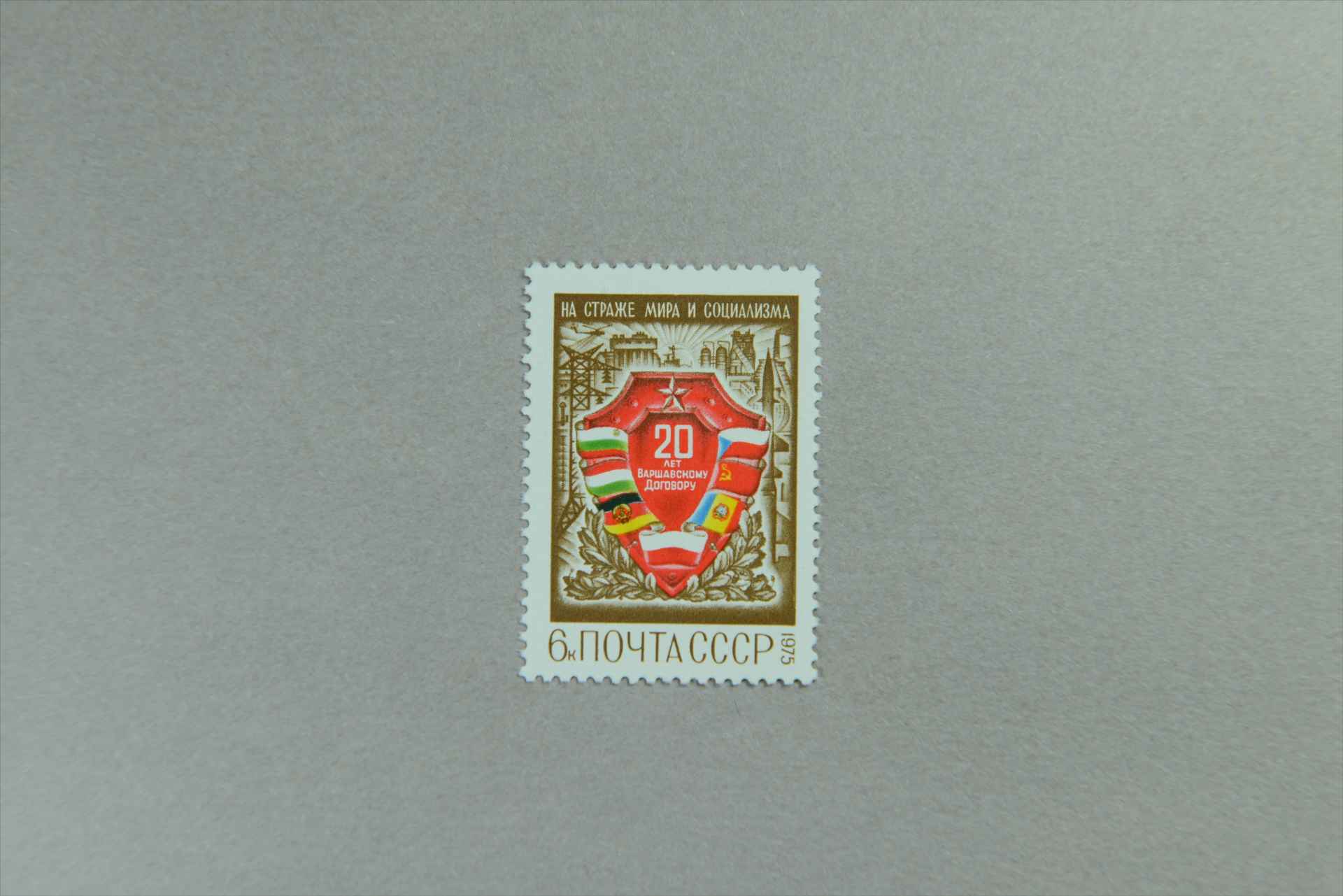 前苏联华沙条约20周年写有纪念文字的盾牌邮票