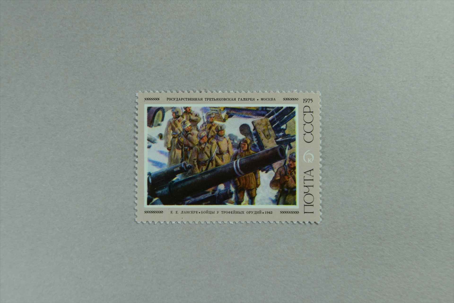 前苏联写生画叶·兰赛列绘《战士缴获的大炮》邮票