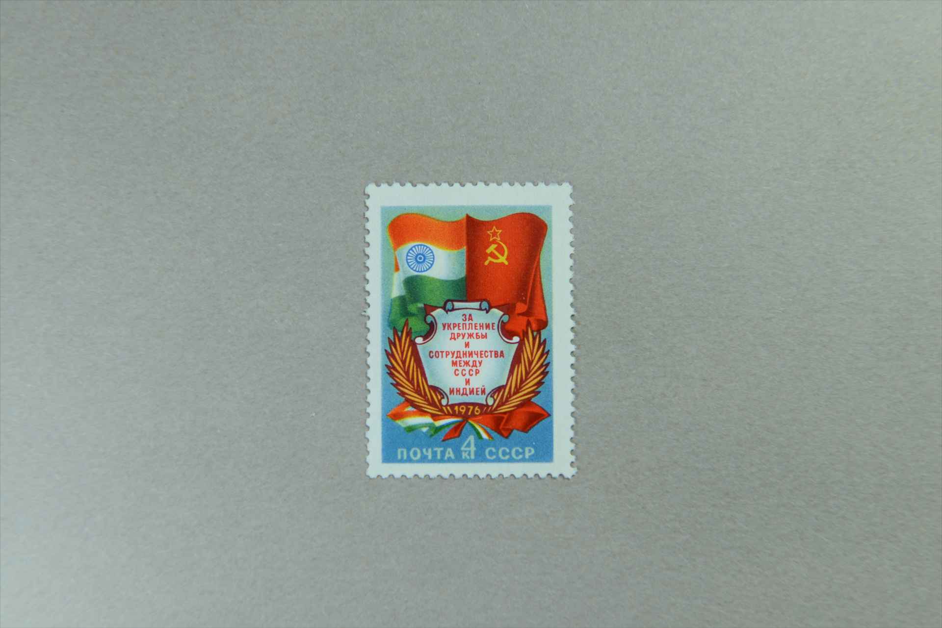 前苏联巩固苏印友谊苏联和印度国旗邮票