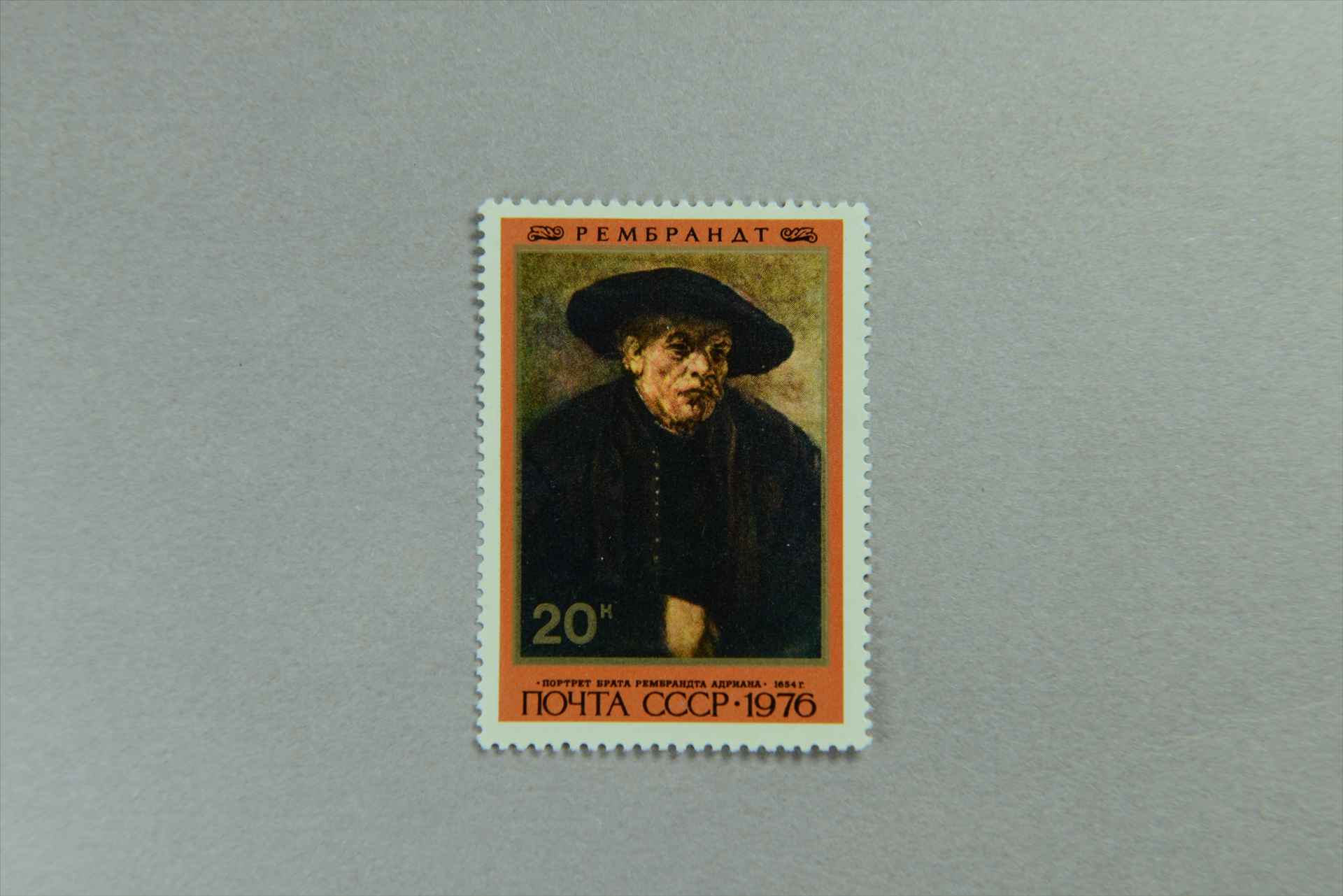 前苏联荷兰画家伦勃朗诞生370周年《阿德里昂像》邮票