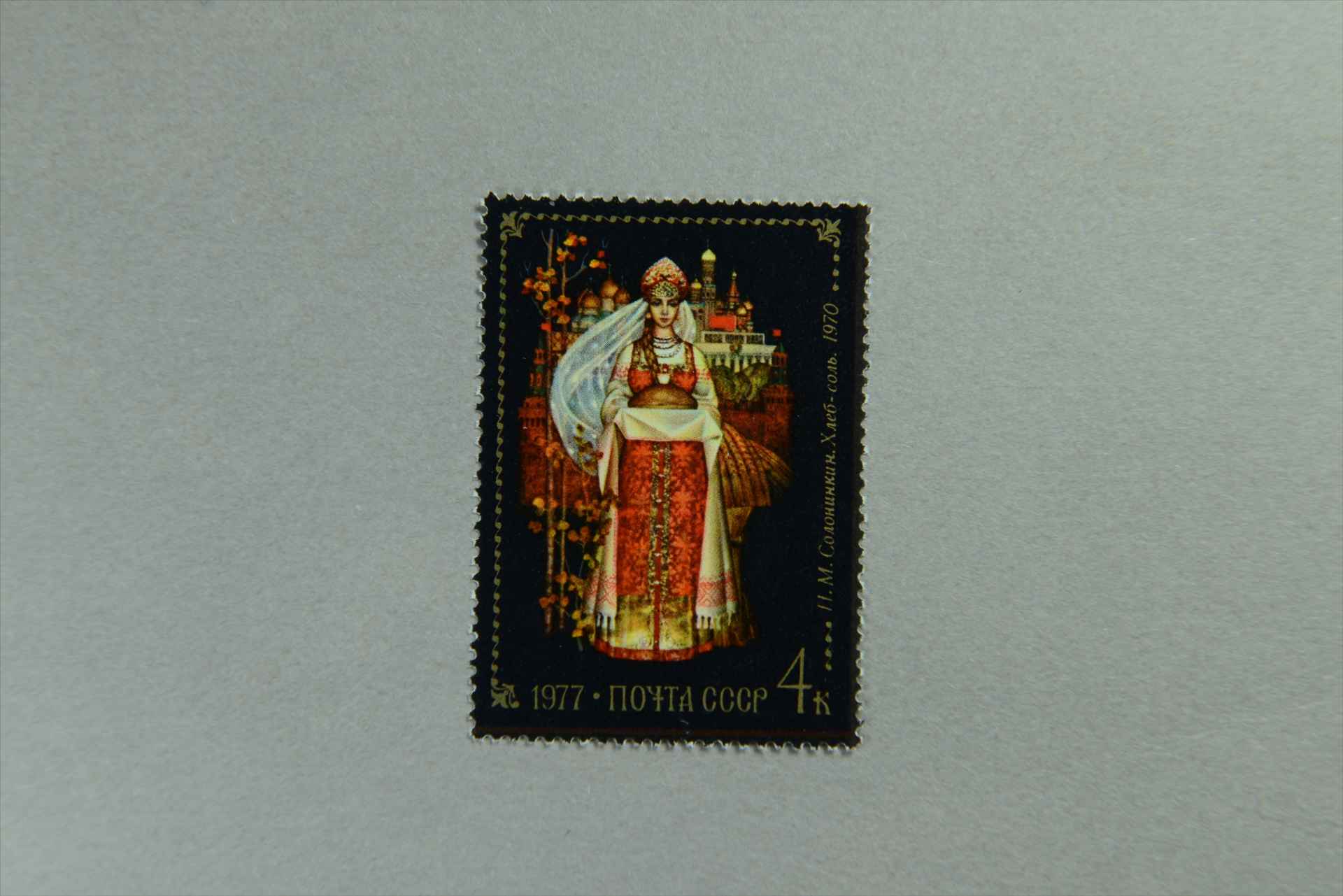 前苏联弗多斯金的民间工艺美术索罗多夫尼科夫的《面包和盐》邮票