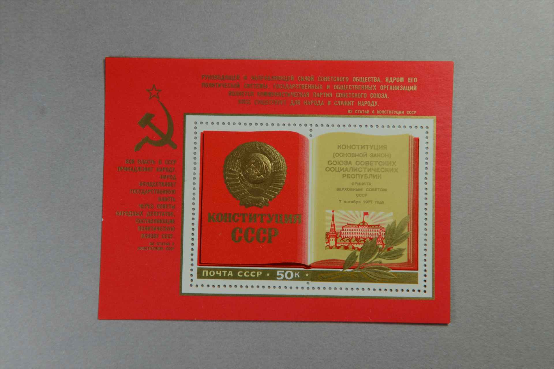 前苏联翻开的《苏联宪法》小型张