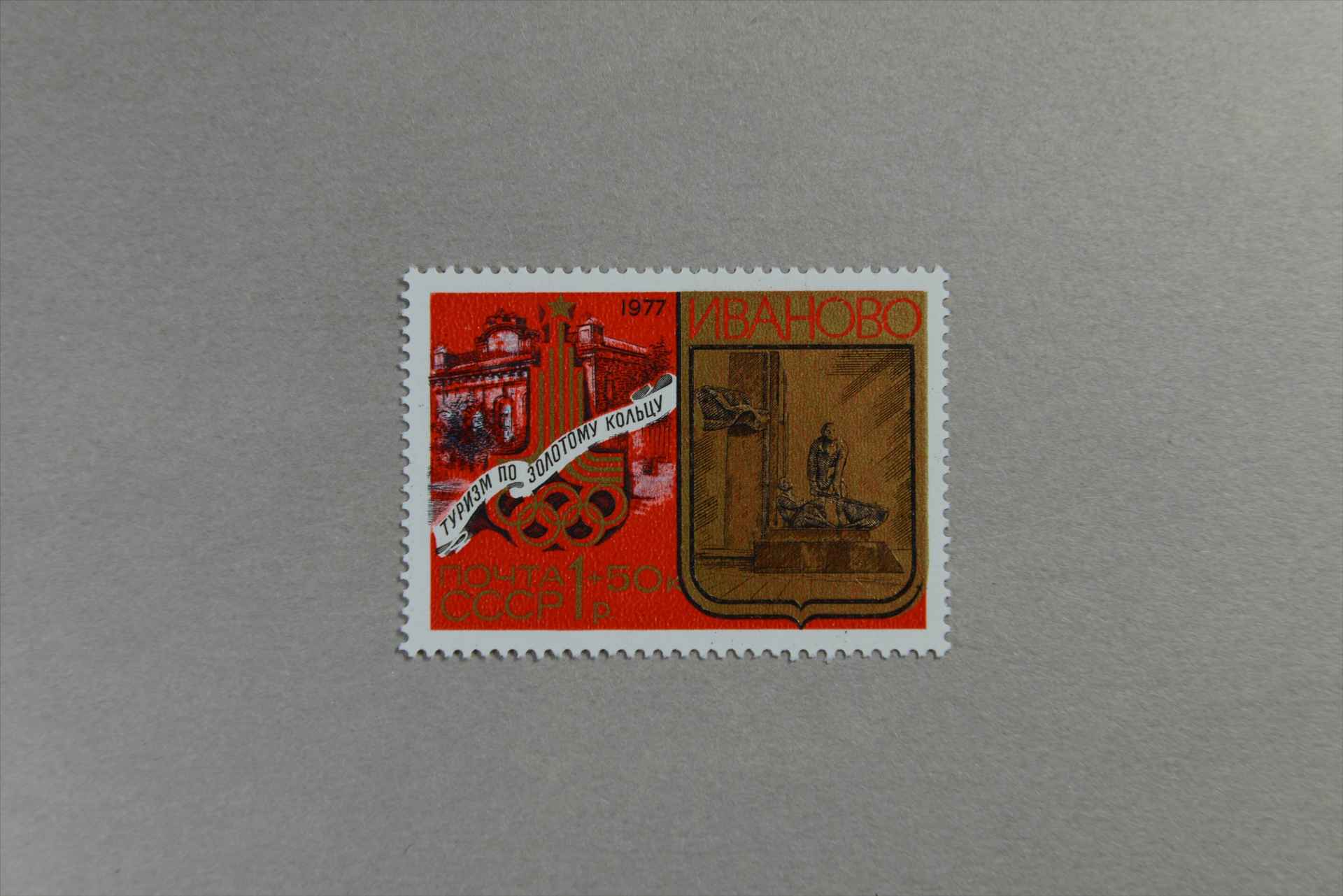 前苏联莫斯科奥运会金球旅游城市伊凡诺沃陈列馆《革命战士》雕像邮票