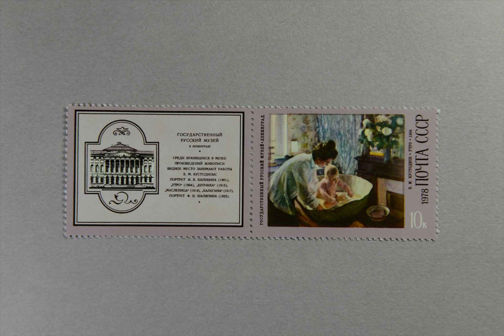 前苏联画家鲍·库斯托季耶夫的《早晨》邮票
