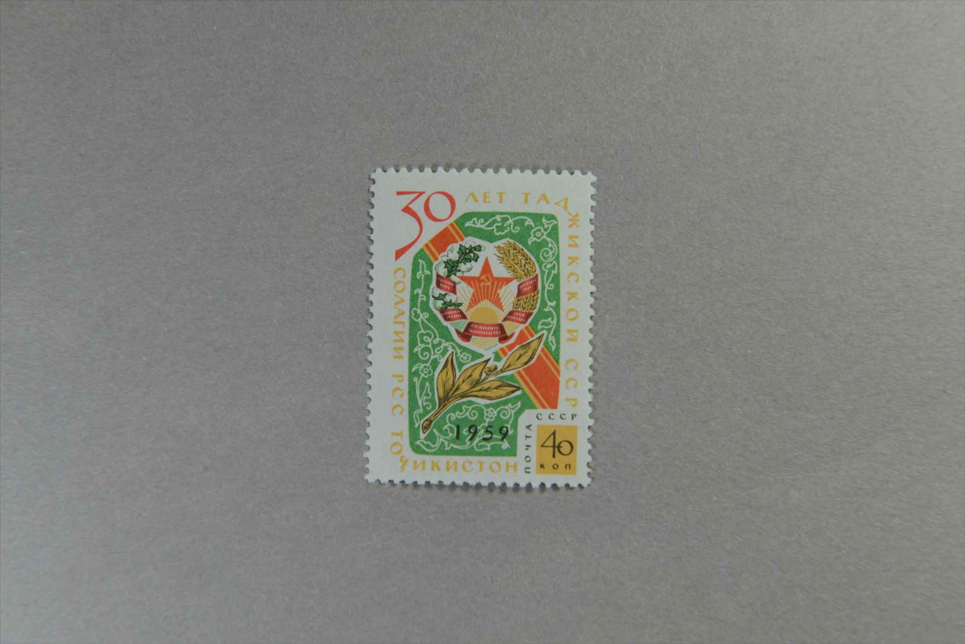 前苏联塔吉克苏维埃共和国成立30周年国徽邮票