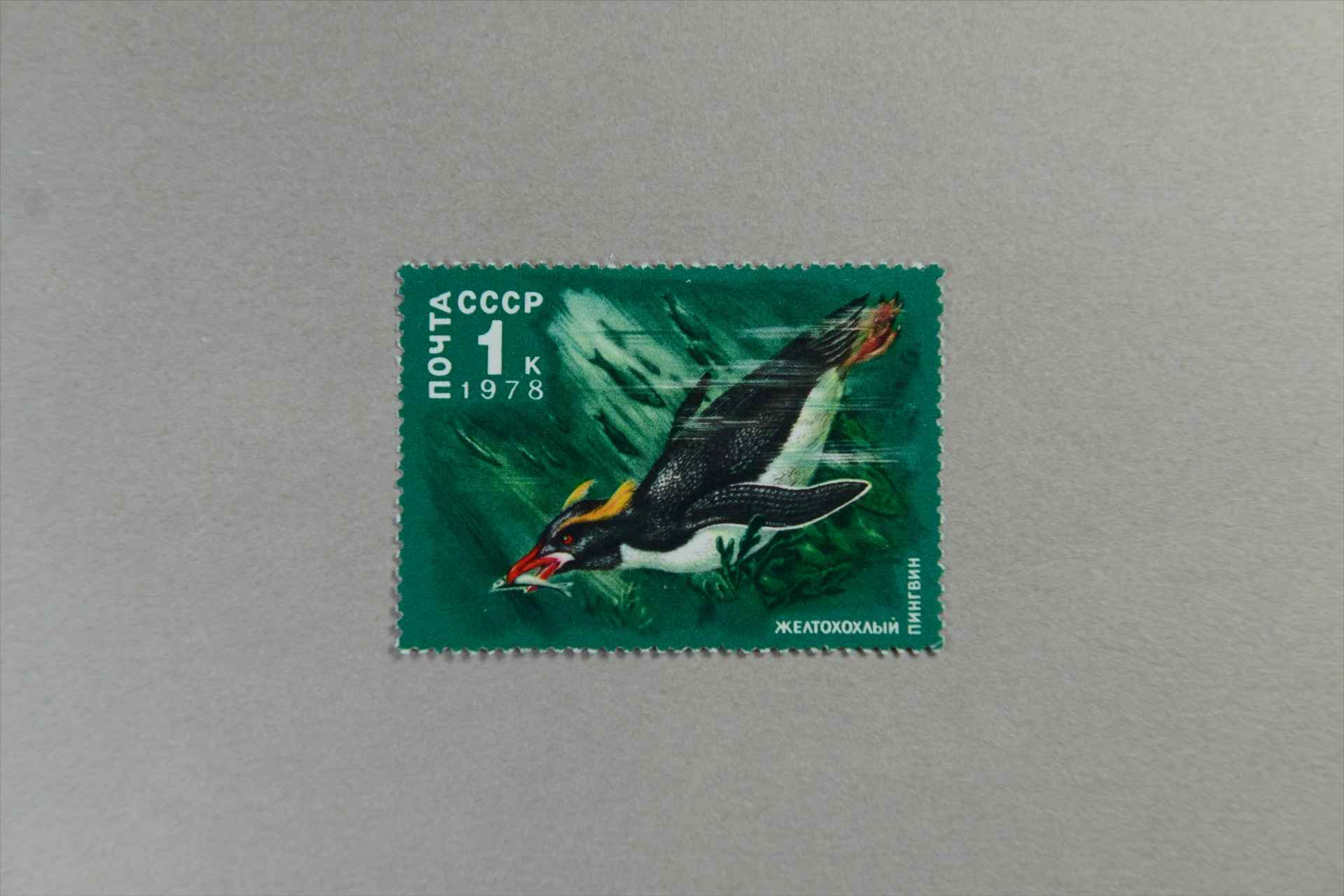 前苏联南极的动物世界黄凤头企鹅邮票