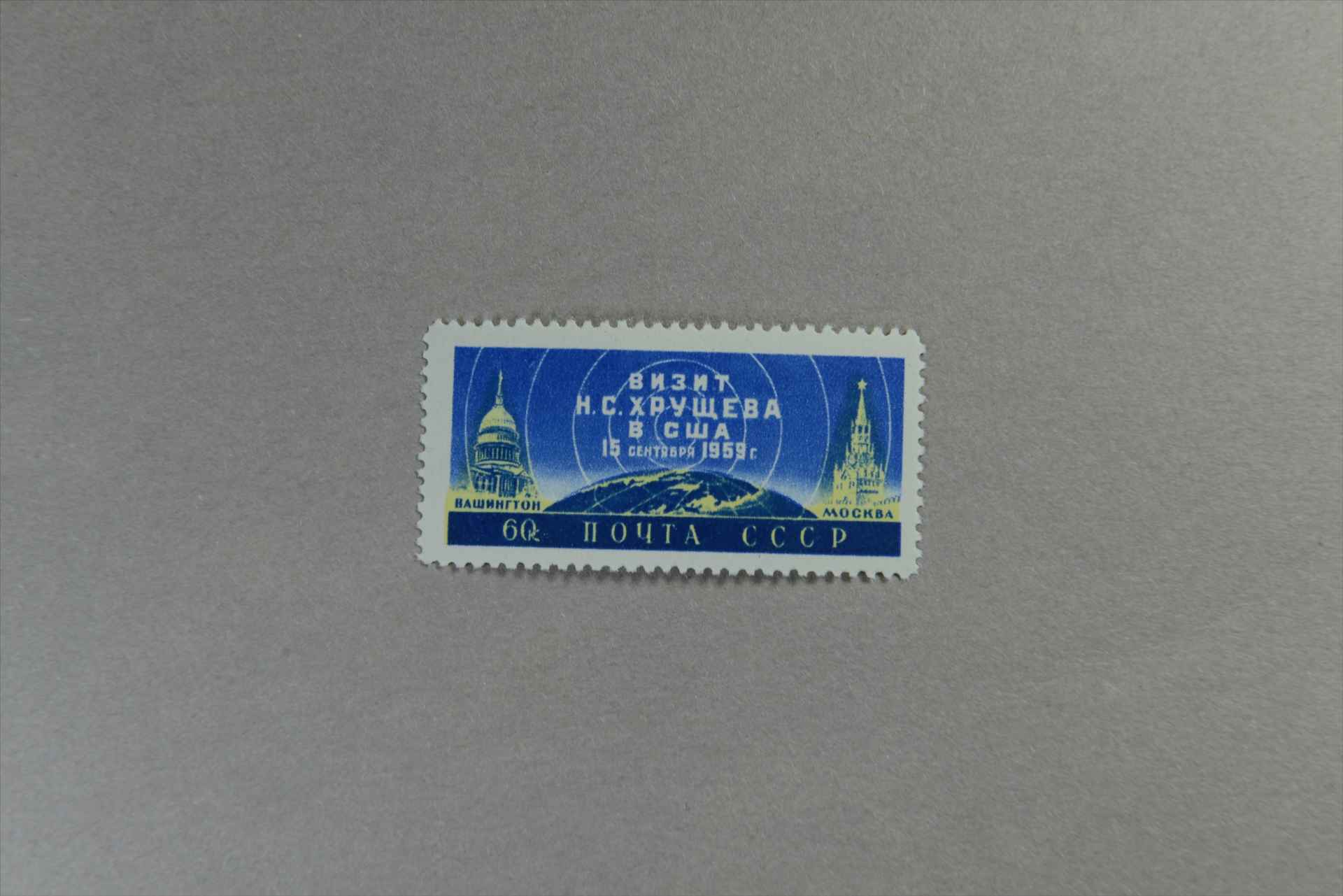 前苏联赫鲁晓夫访问美国莫斯科克里姆林宫斯帕斯克钟楼和华盛顿国会大厦邮票
