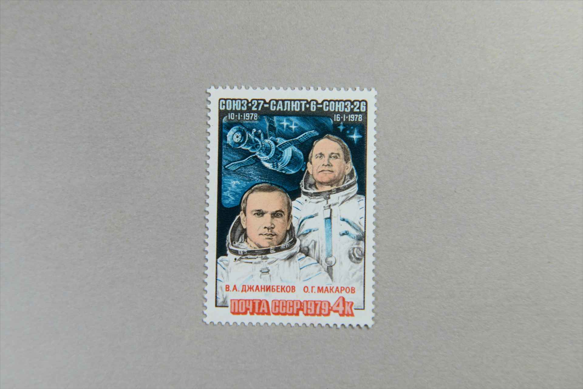 前苏联“联盟27”宇宙飞船的航行宇航员贾尼别科夫和马卡罗夫邮票