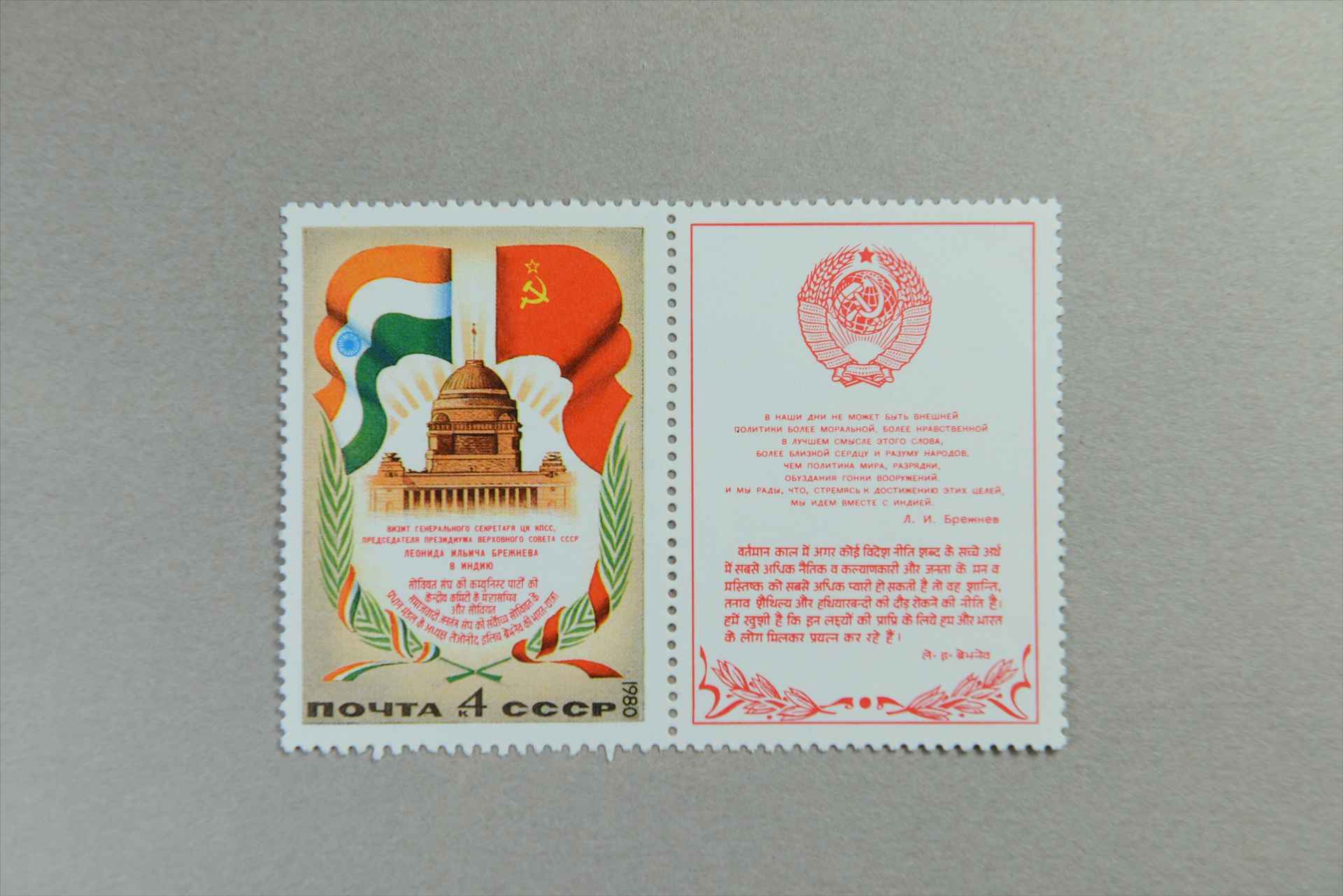 前苏联勃列日涅夫访问印度苏联和印度国旗新德里政府大厦邮票