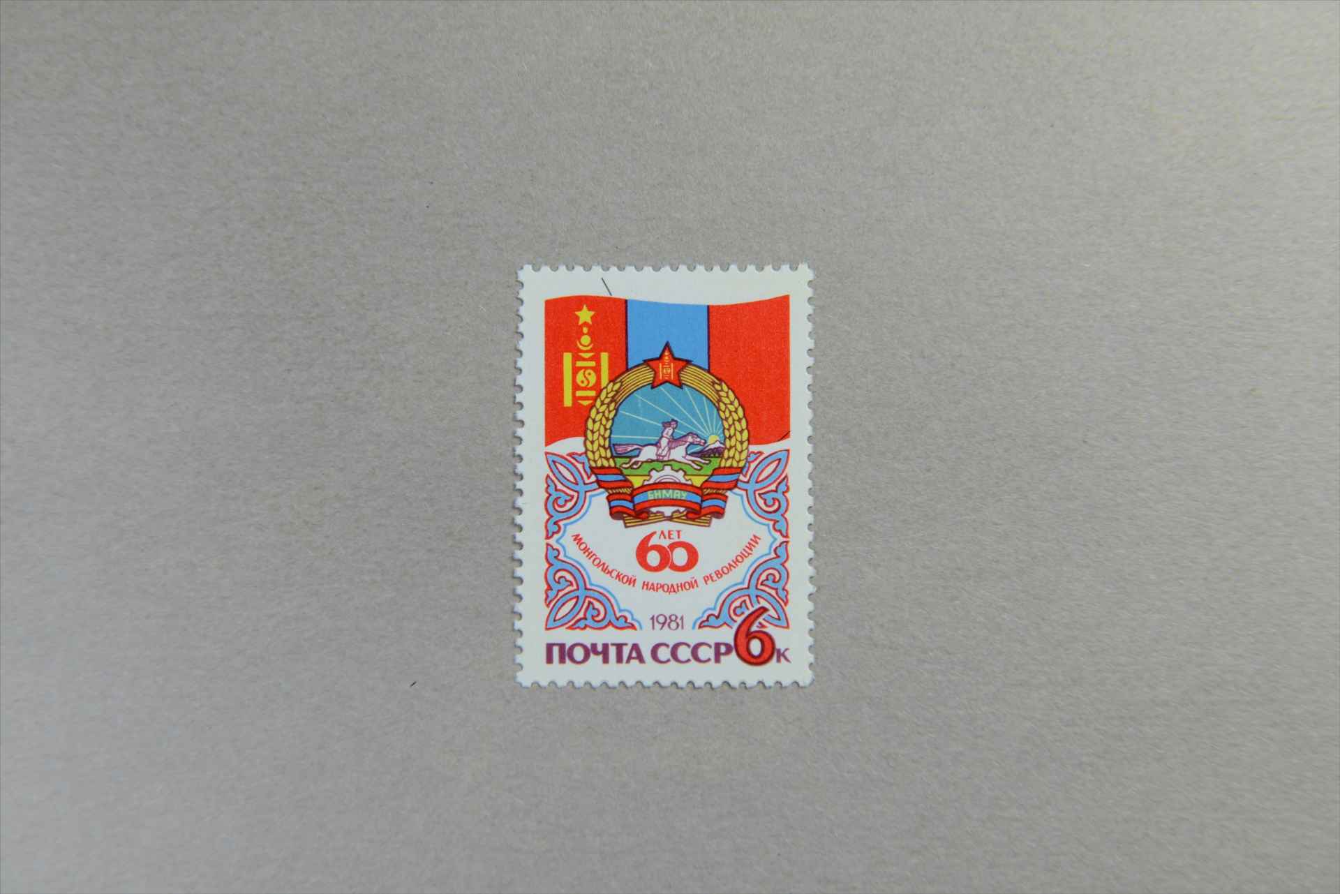 前苏联蒙古人民革命60周年蒙古人民共和国国旗和国徽邮票