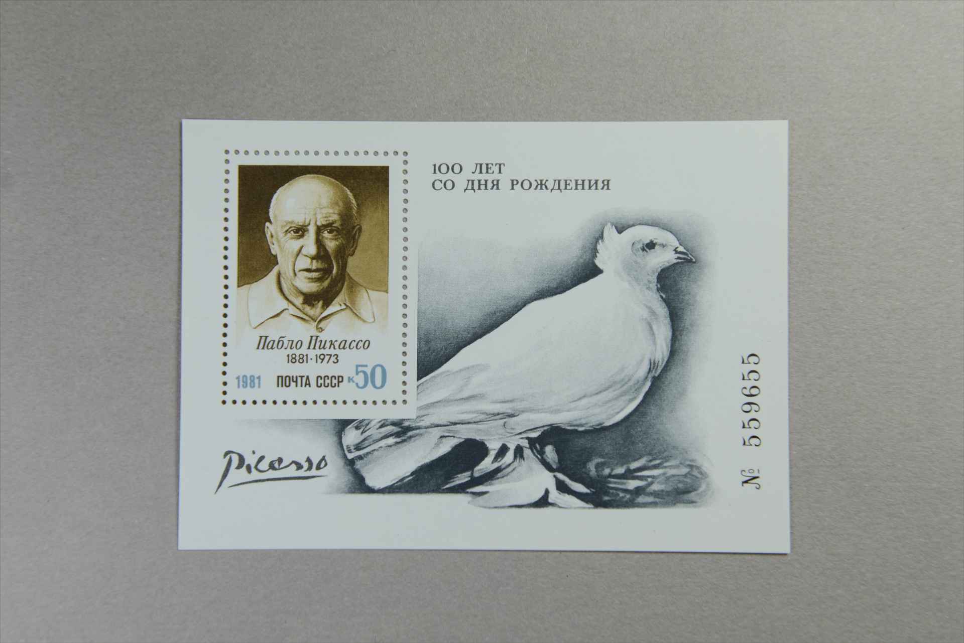 前苏联画家毕加索诞生100周年毕加索像和作品《鸽子》小型张