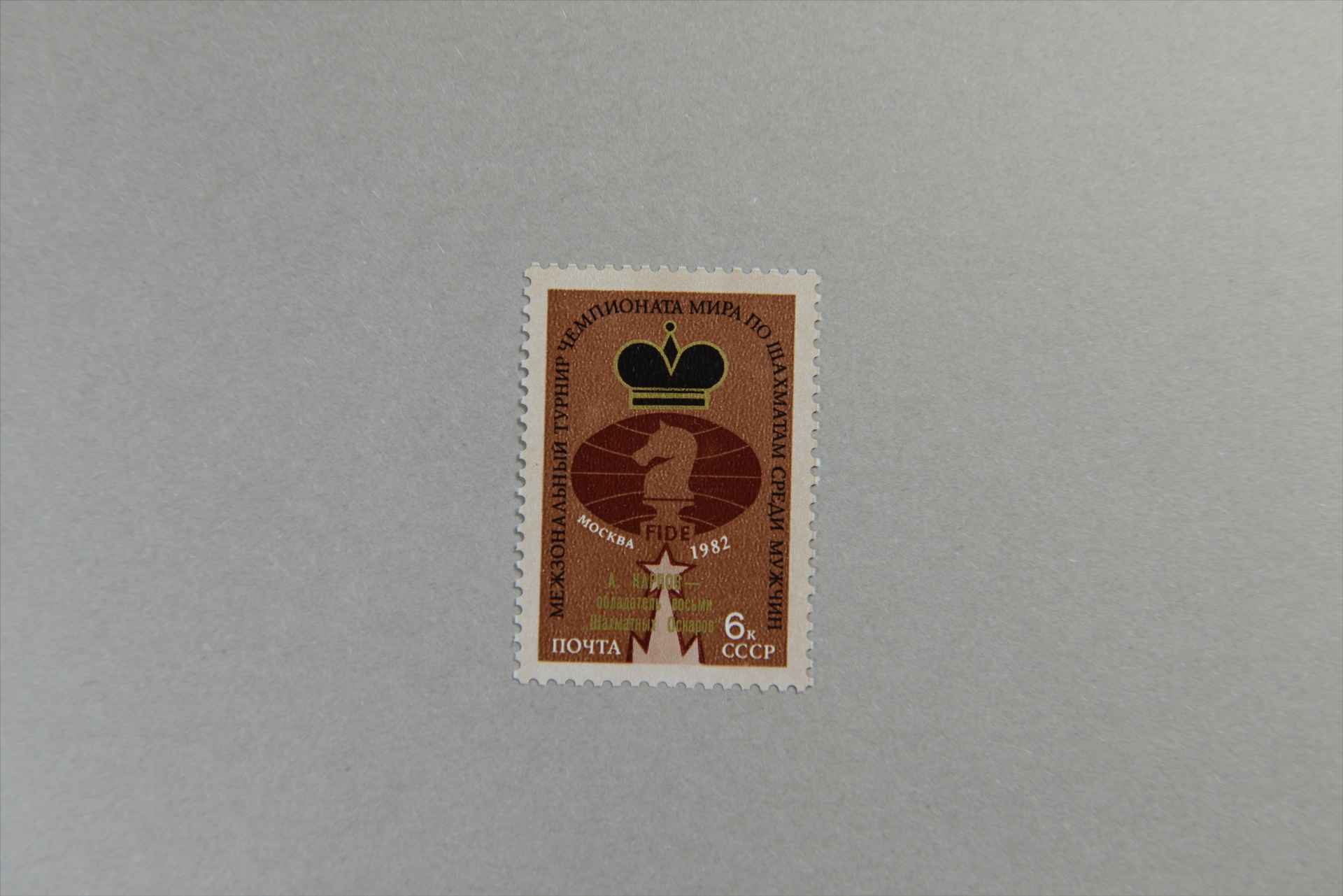 前苏联国际象棋世界锦标赛男子比赛冠军徽章加字“国际象棋奥斯卡”获得者邮票