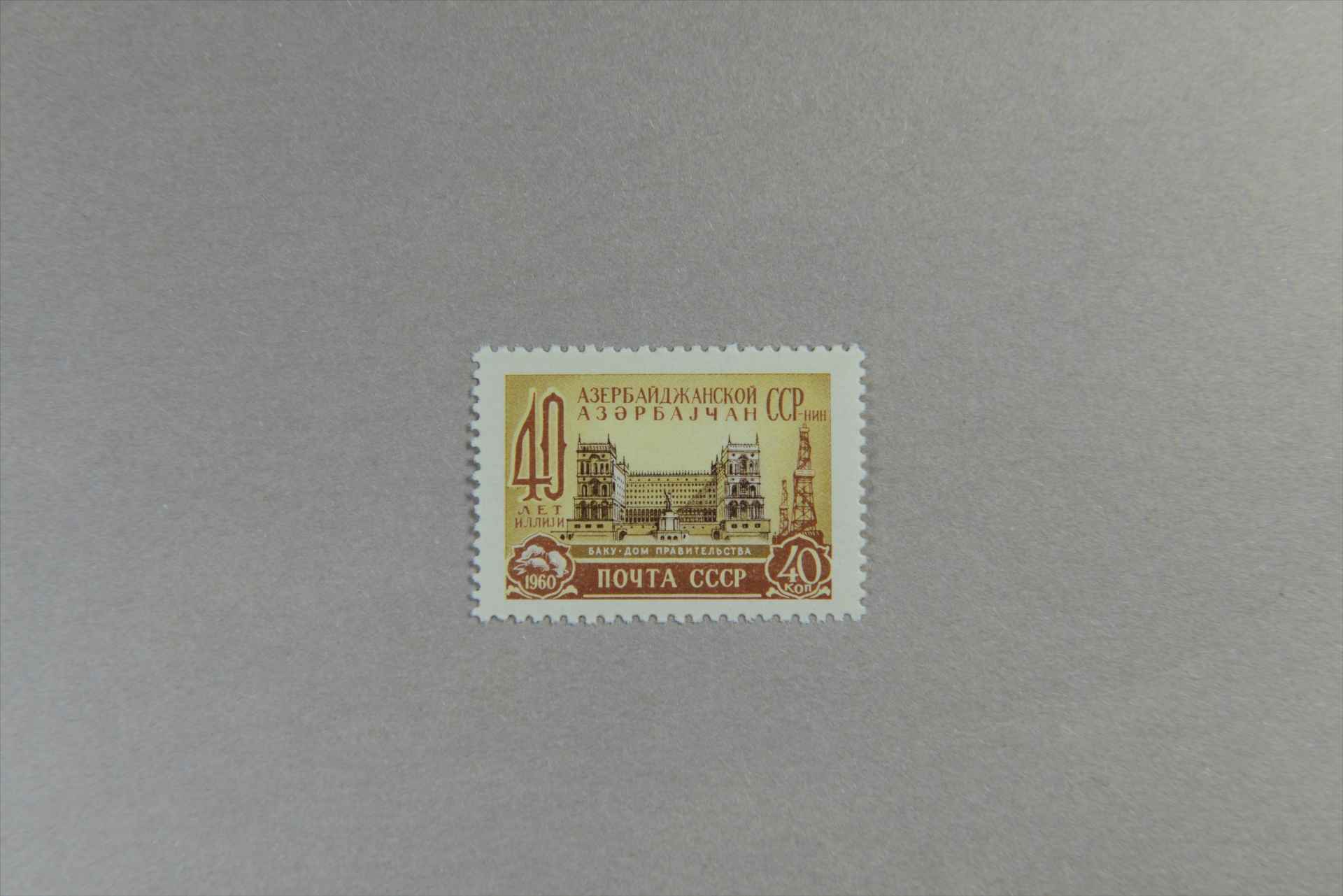 前苏联阿塞拜疆苏维埃共和国40周年巴库政府大厦邮票