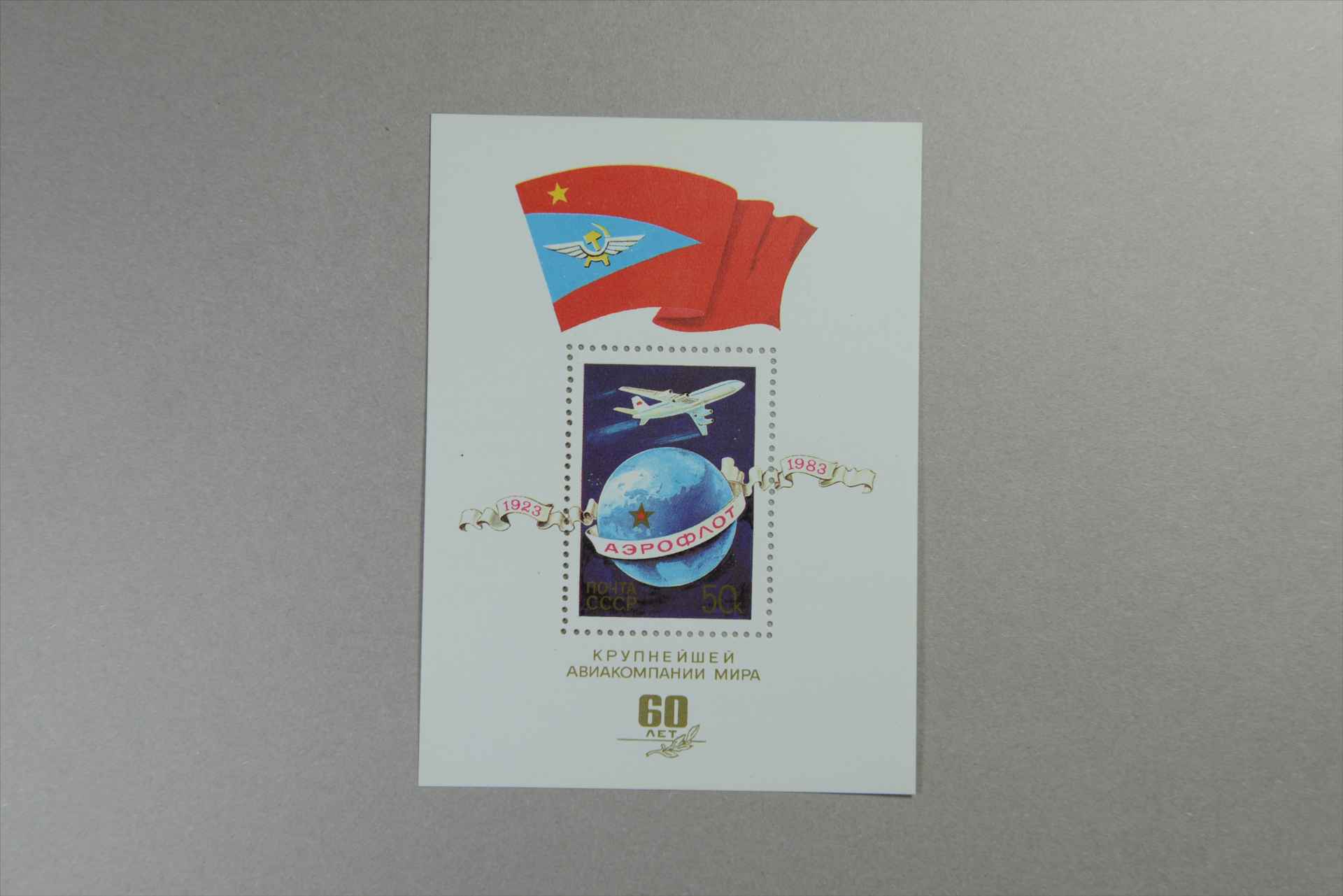 前苏联民航60周年在地球上空飞行的伊尔-86型飞机小型张