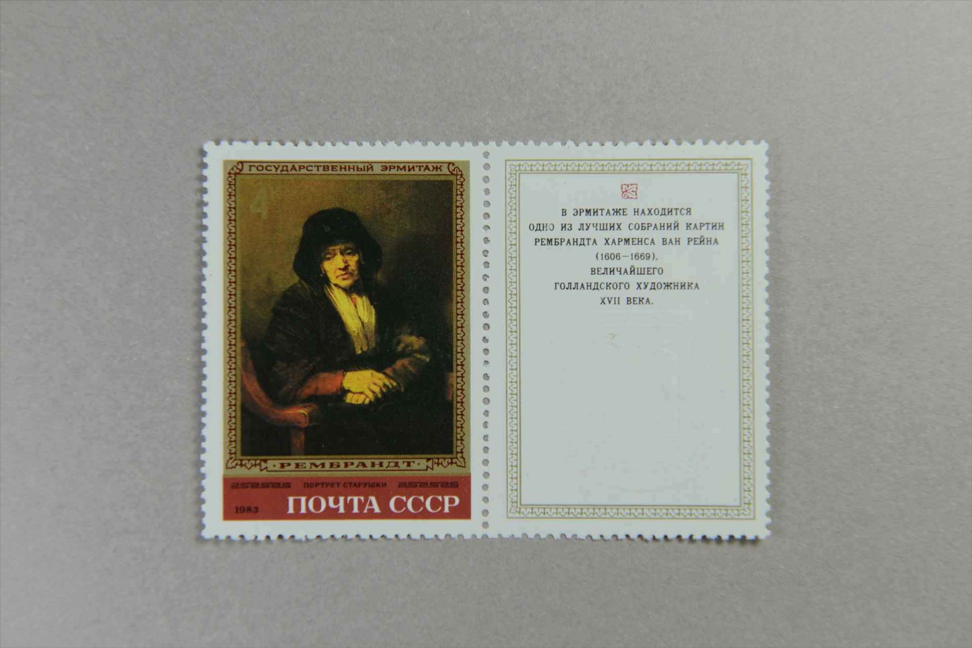 前苏联艾尔米塔日美术博物馆珍藏的伦勃朗绘画《老妇人像》邮票