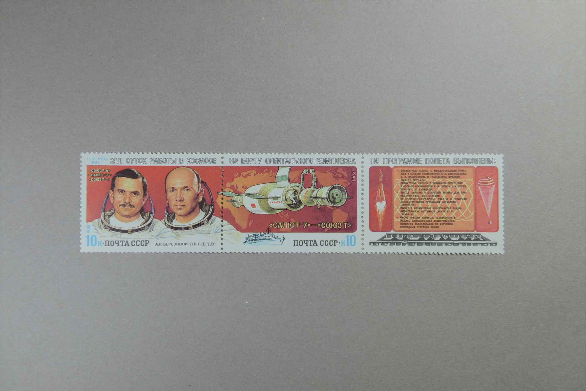前苏联“联盟-T”-“礼炮-7”号在轨道联合体上考察邮票