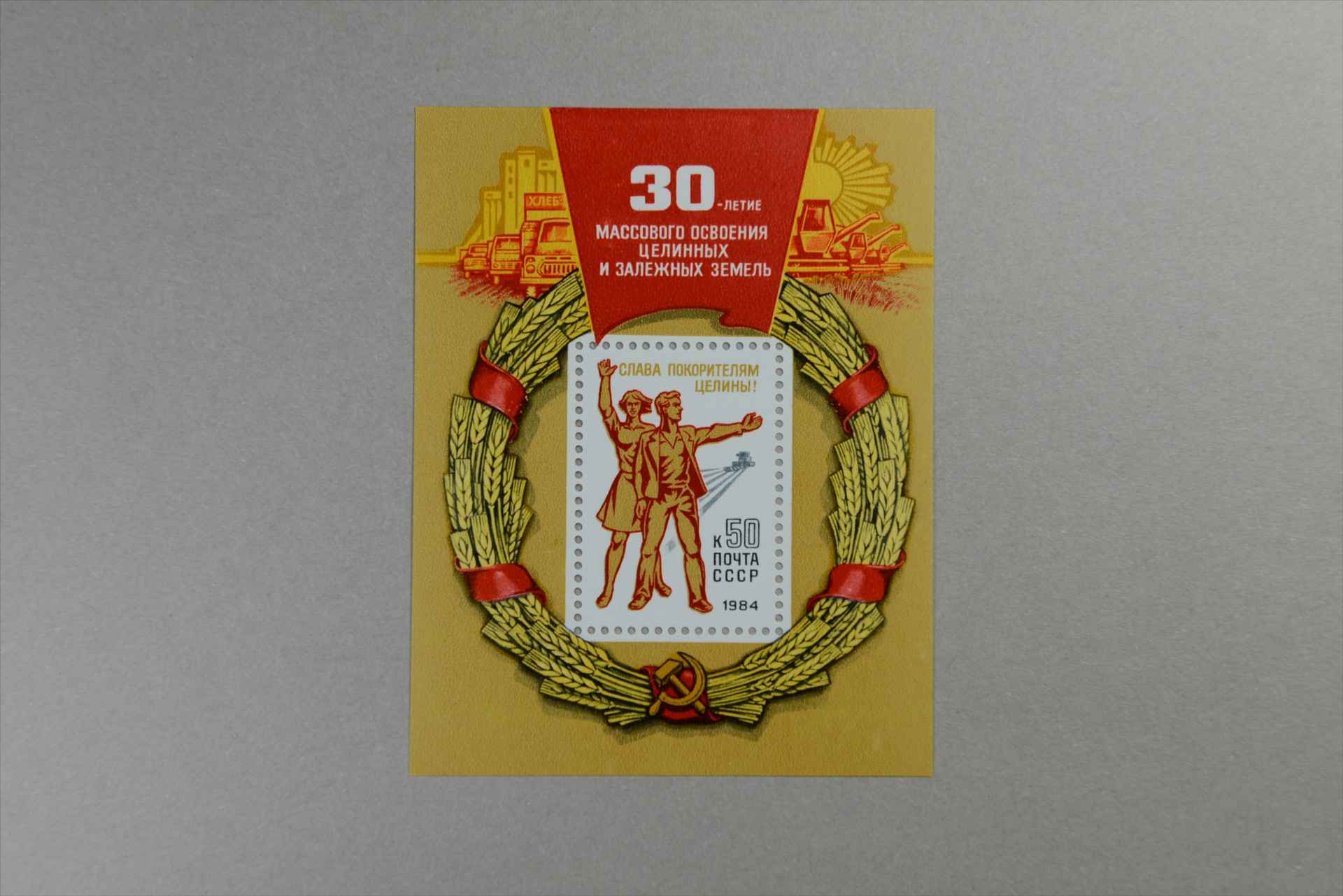 前苏联大规模垦荒30周年参与垦荒的青年工人小型张