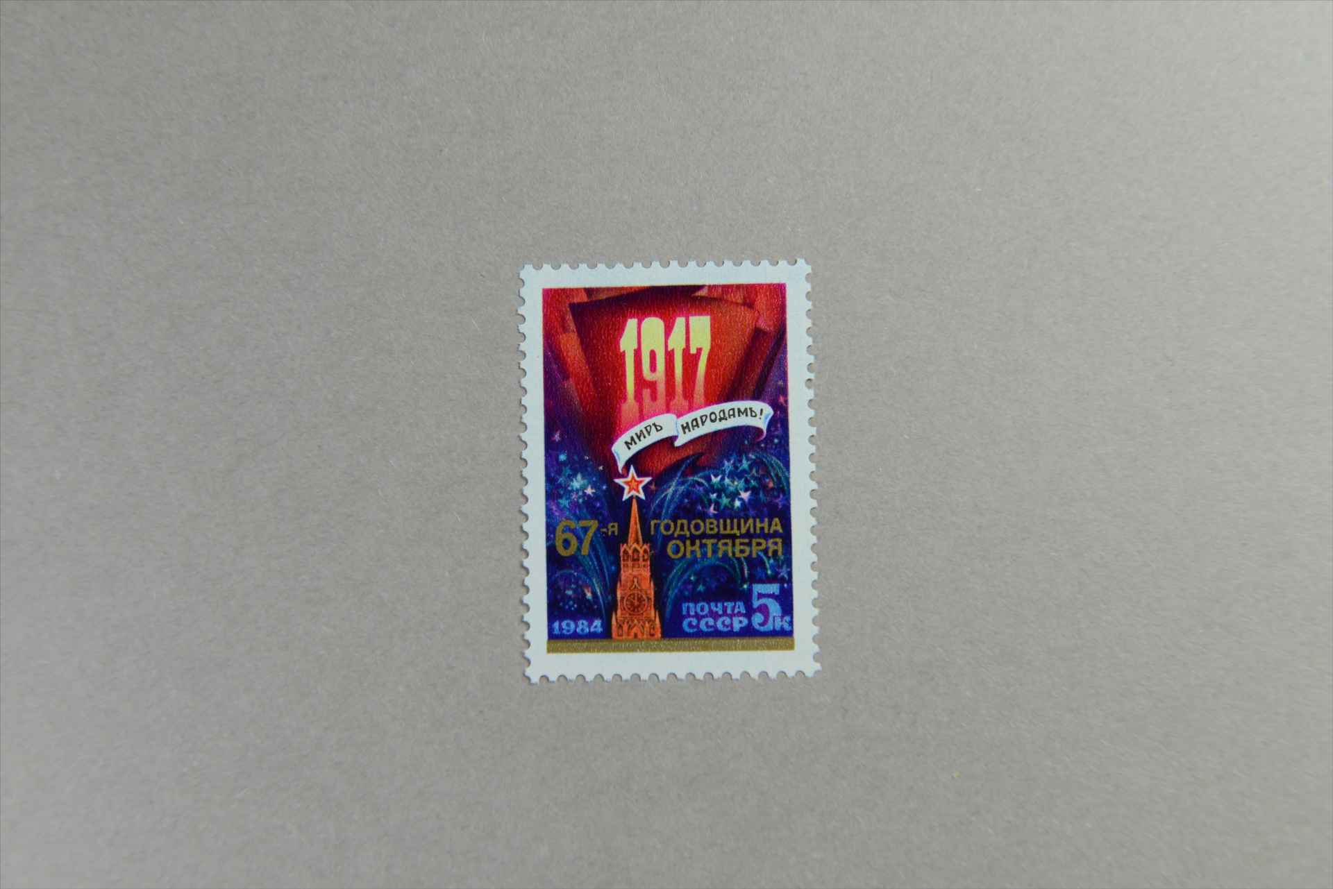前苏联十月革命76周年克里姆林宫斯帕斯克钟楼的自鸣钟邮票