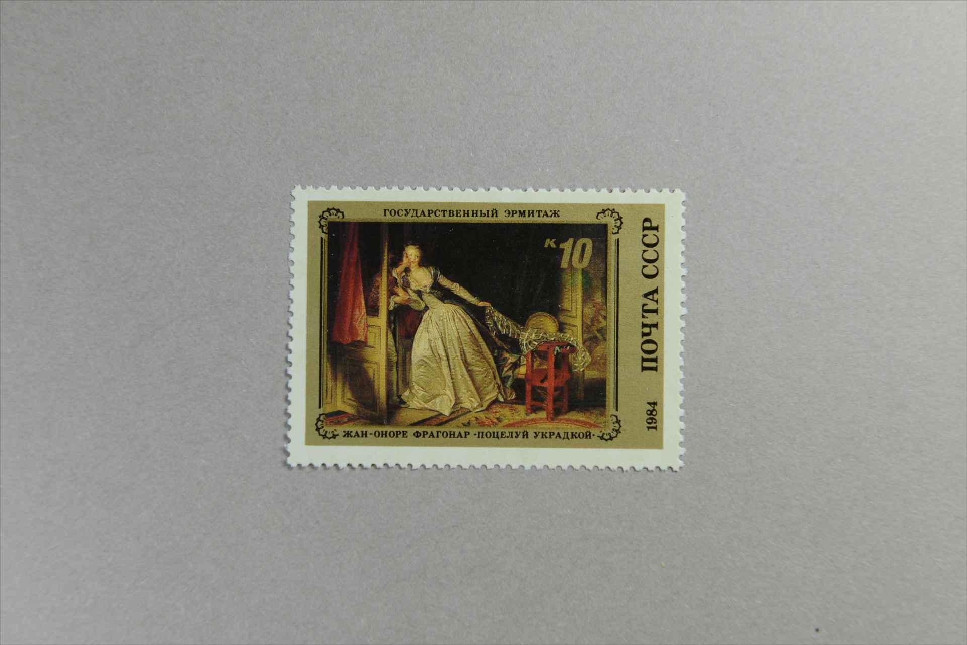 前苏联埃尔米塔日美术博物馆珍藏的法国名画让·弗拉戈纳《偷吻》邮票