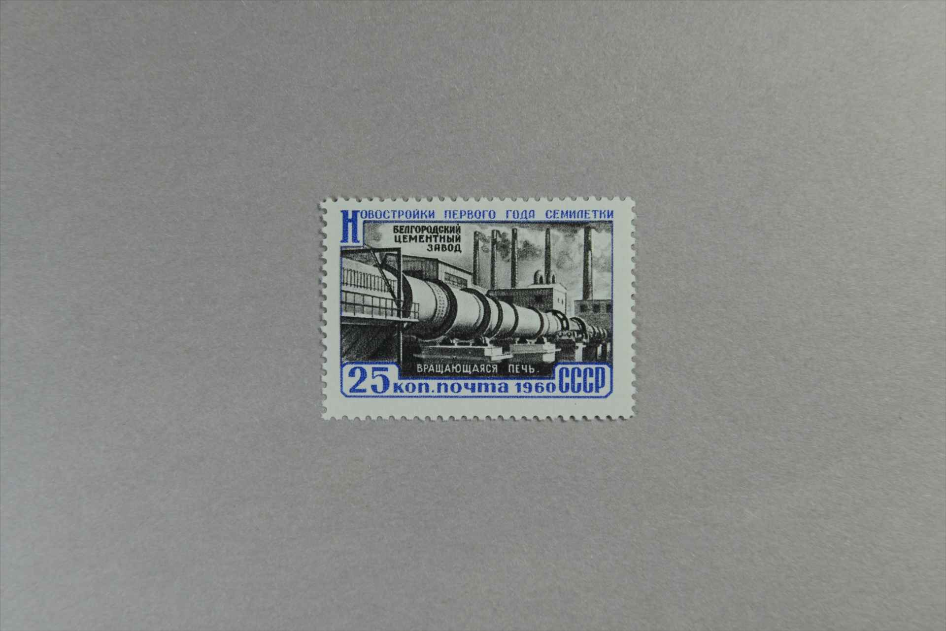 前苏联七年计划第一年的新建筑工地水泥厂邮票