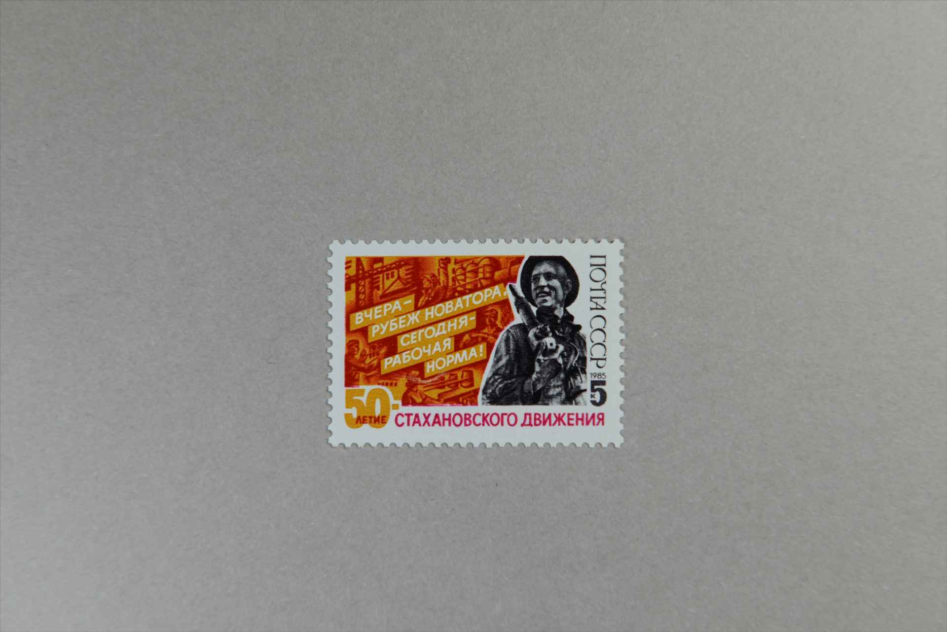 前苏联斯达汉诺夫运动50周年身穿工作服的斯达汉诺夫的半身像邮票