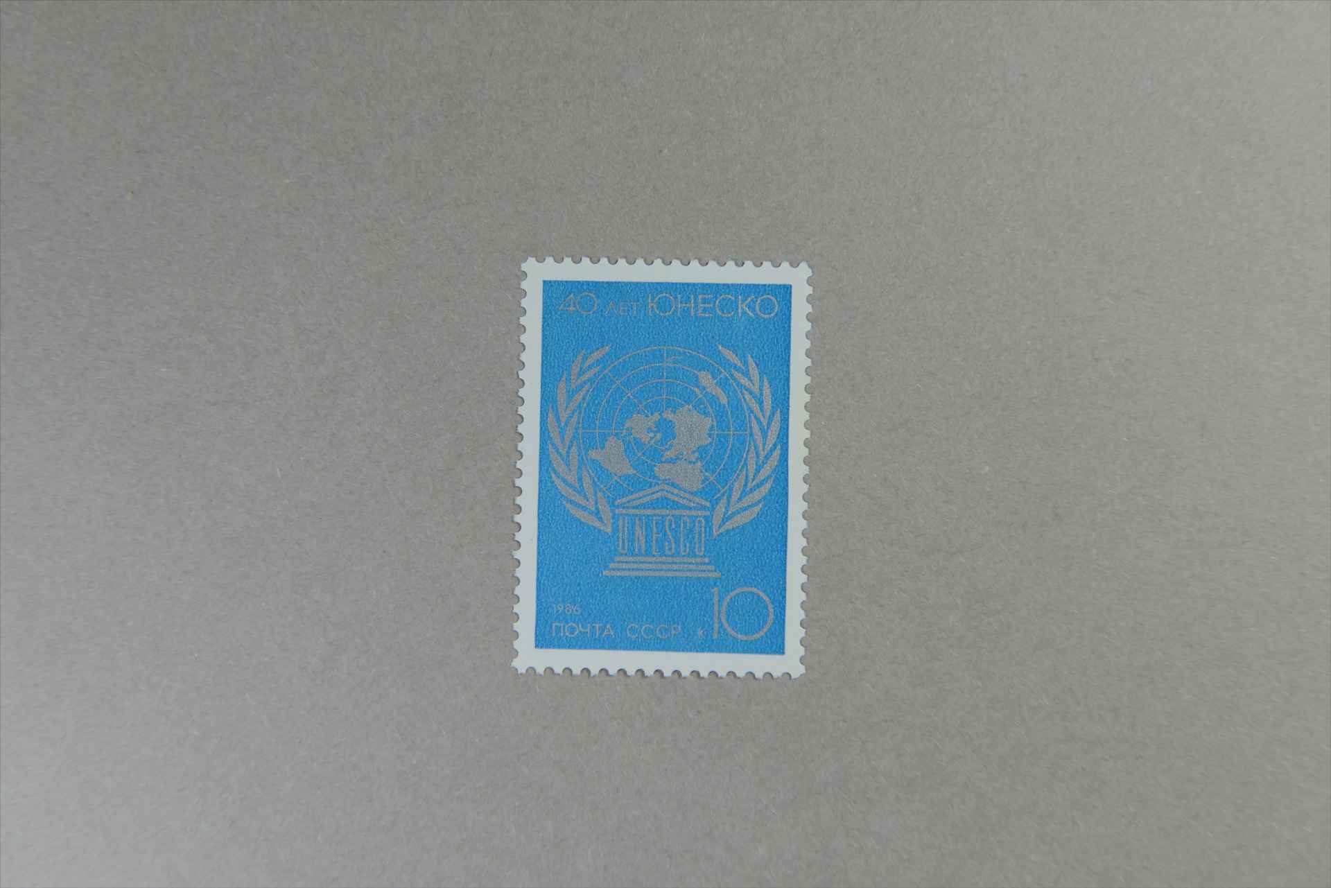 前苏联联合国科教文组织40周年联合国徽和联合国教科文组织的徽志邮票