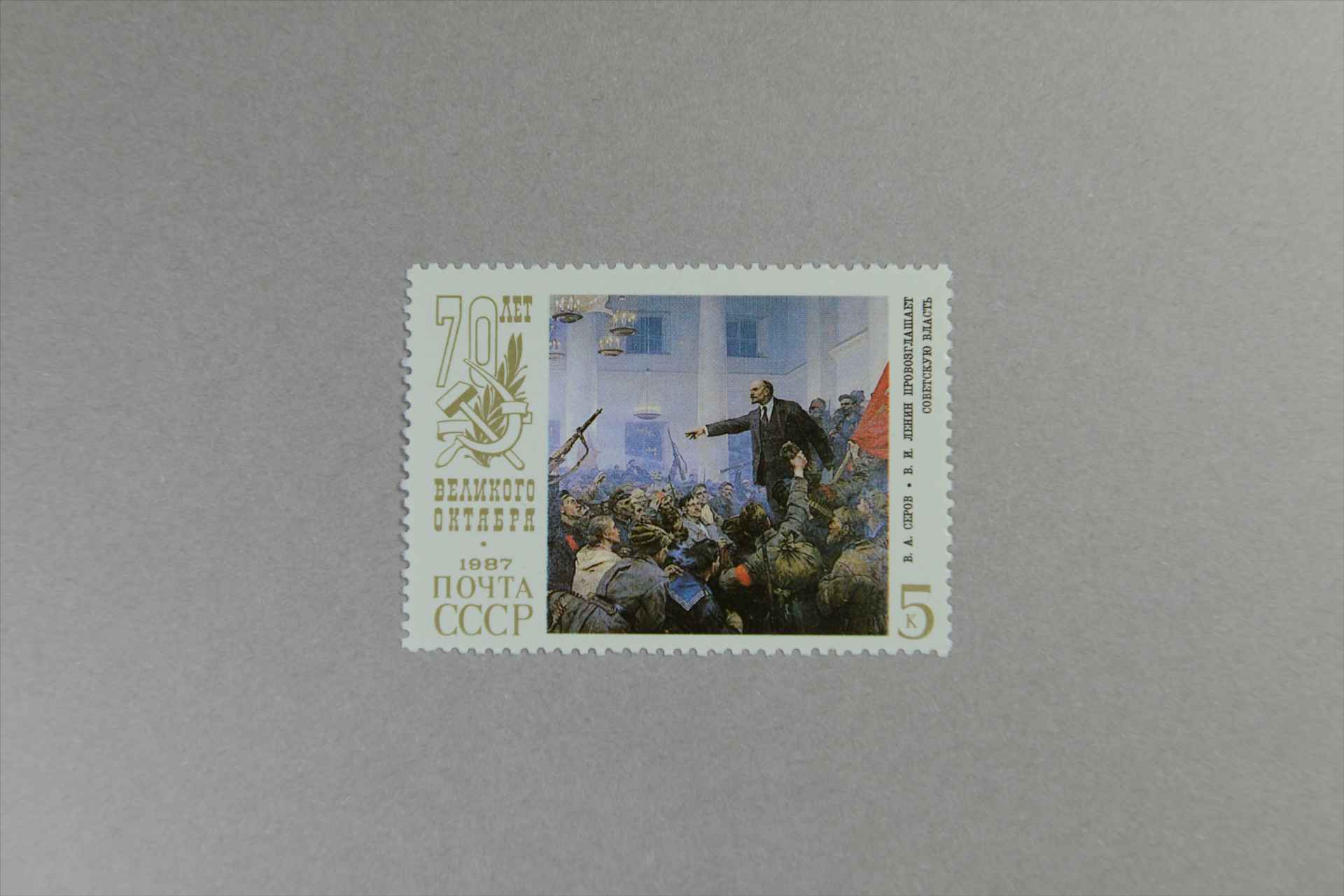 前苏联伟大的十月革命70周年油画《列宁宣告苏维埃政权成立》邮票