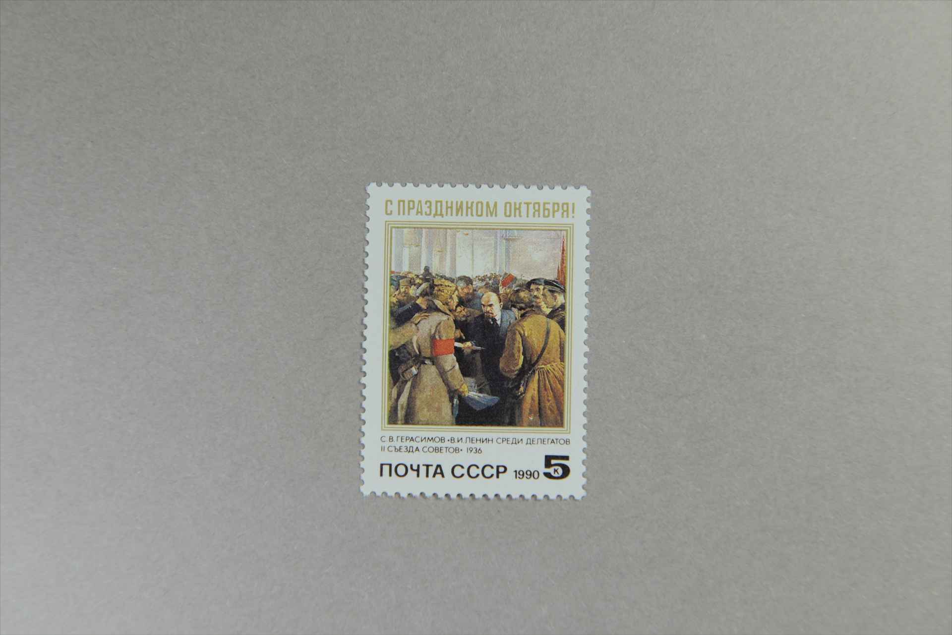 前苏联十月革命73周年《列宁在苏维埃第二次代表大会的代表中》格拉西莫夫绘邮票