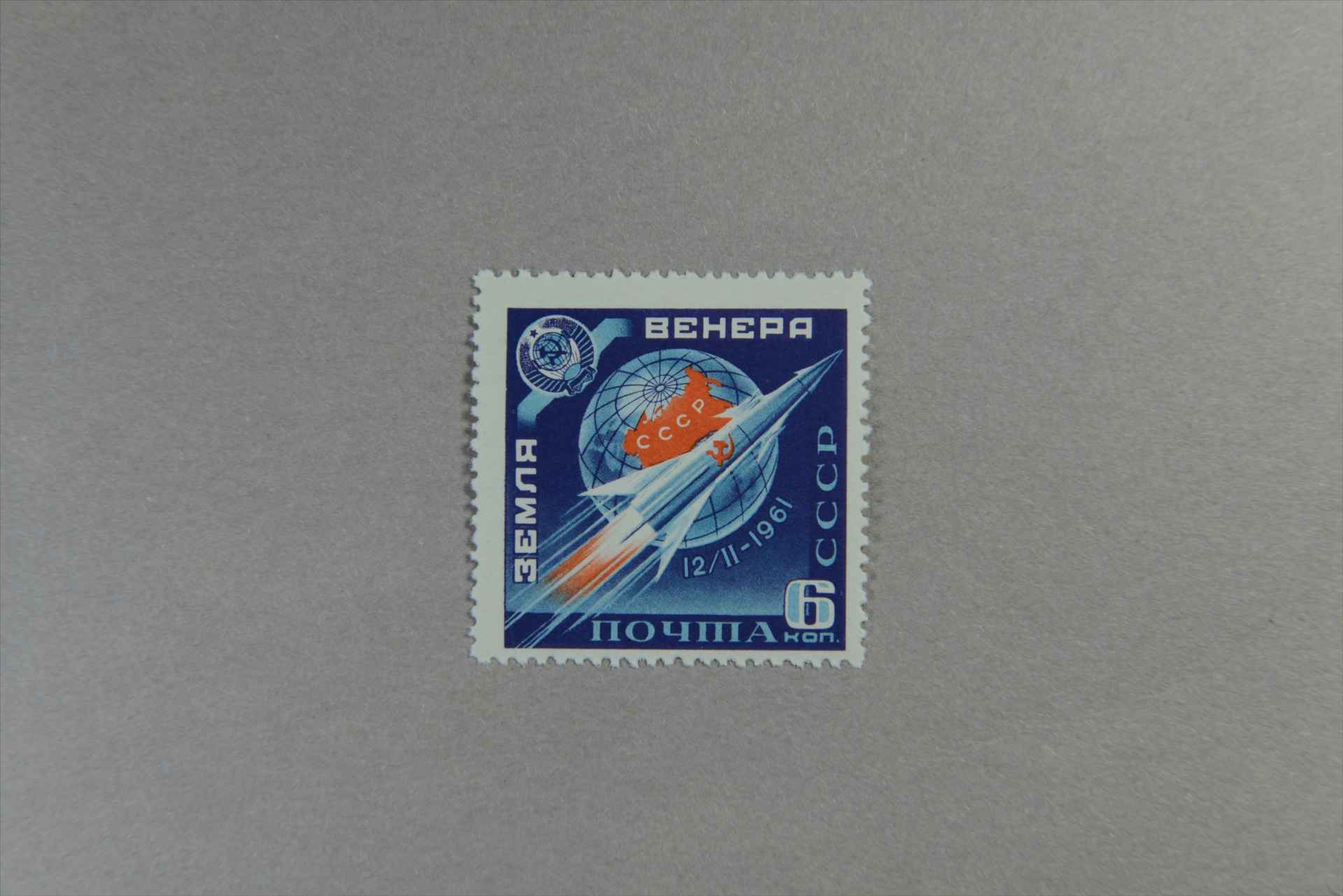 前苏联自动空间站“金星1号”以地球为背景的宇宙火箭邮票