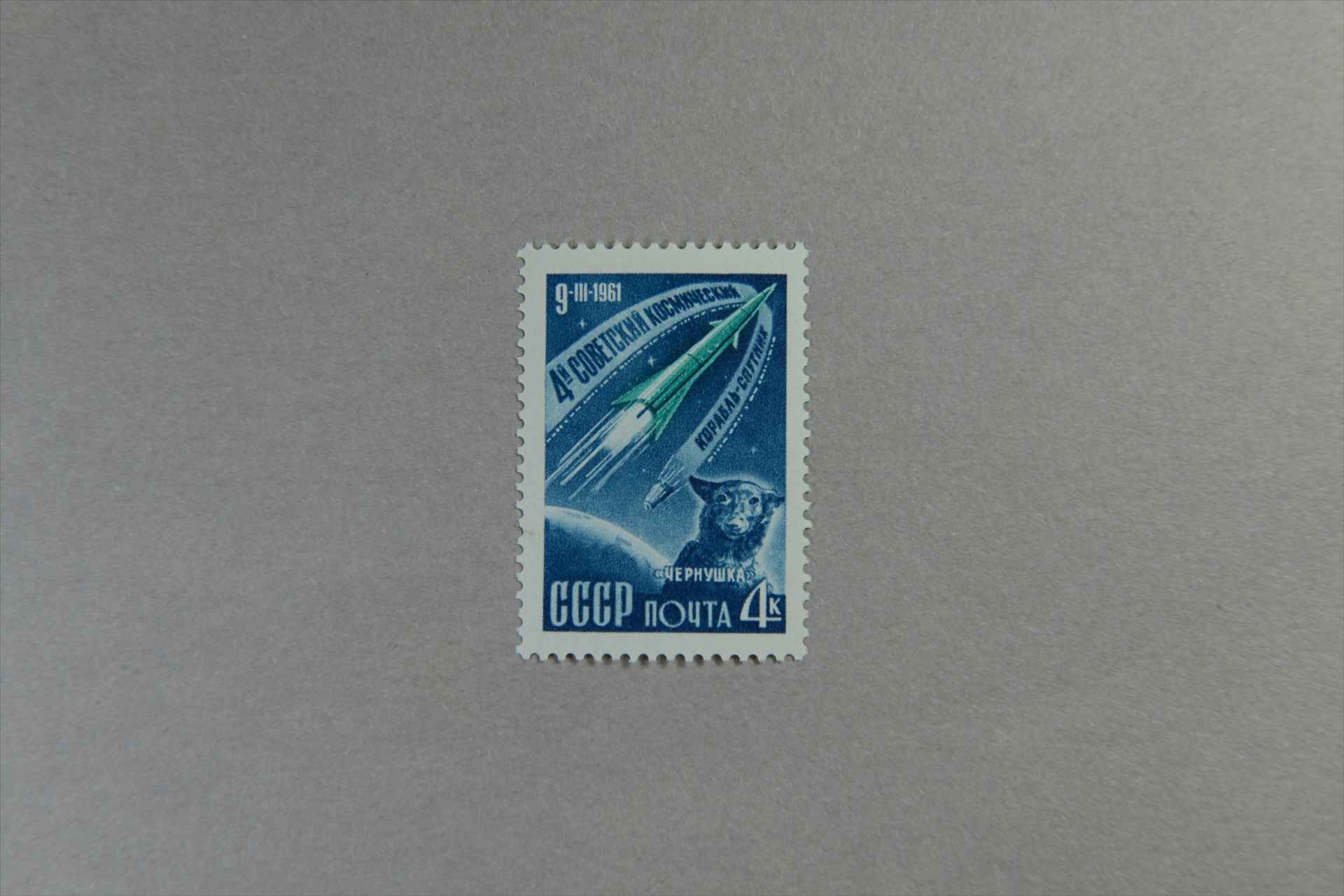 前苏联第四艘苏联宇宙飞船和带入太空的狗邮票