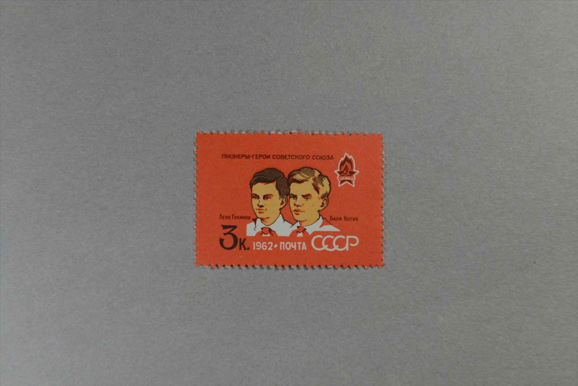 前苏联少先队组织成立40周年英雄、少先队游击队员列尼亚·戈里科夫和瓦利亚·科济克邮票